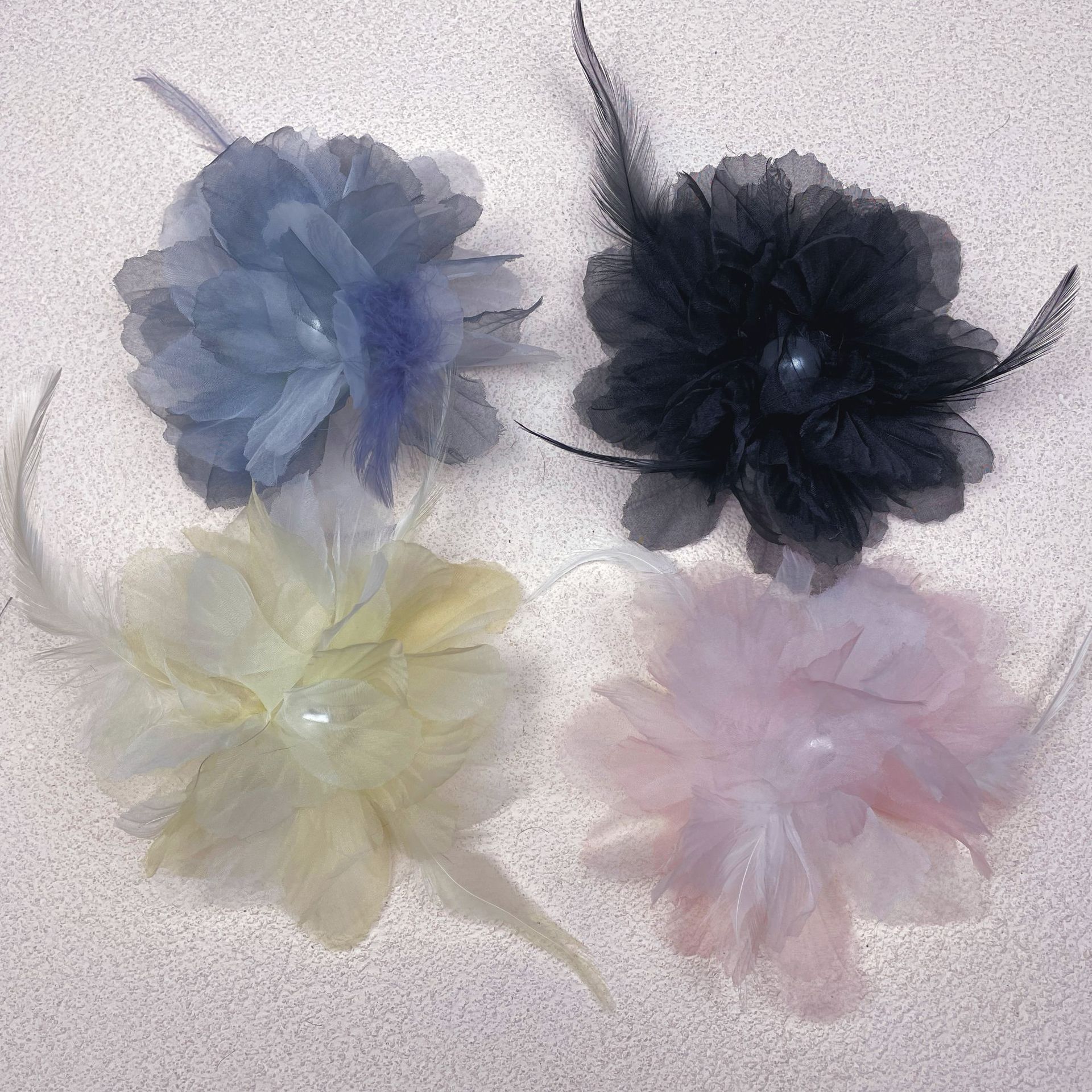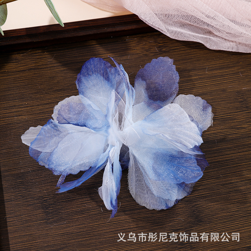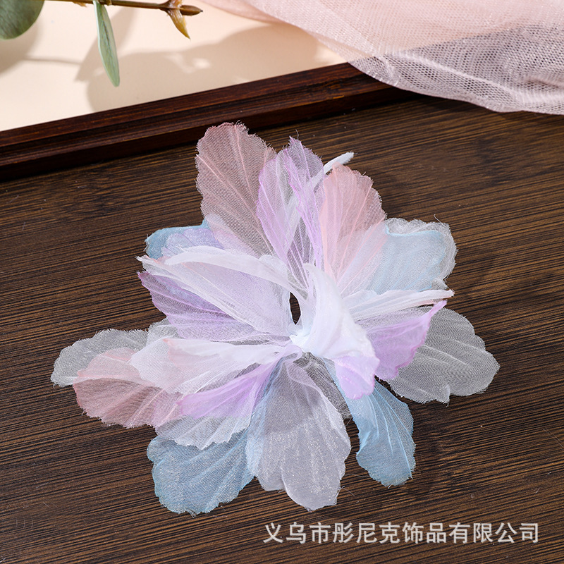 新款古风渐变立体手工欧根纱花朵 超仙古风羽毛大珍珠DIY仿真花朵