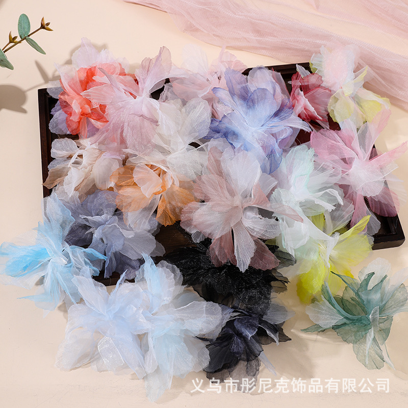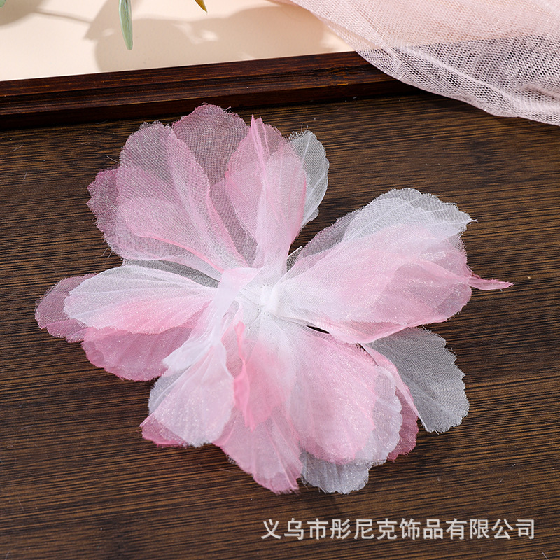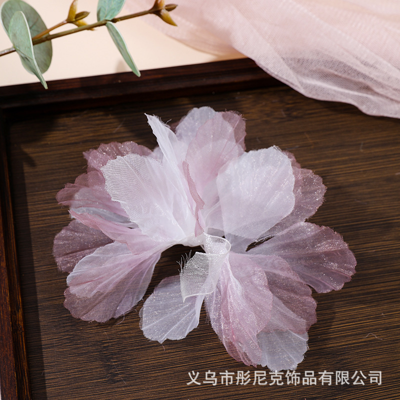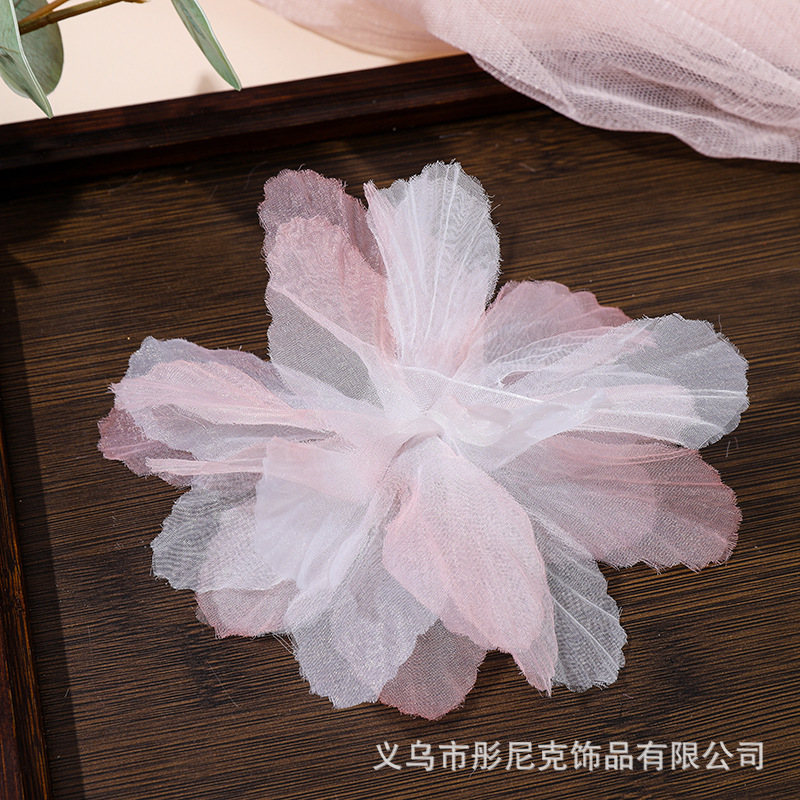 大号14cm渐变欧根纱花瓣立体花朵边装饰diy服装头饰春季新款1