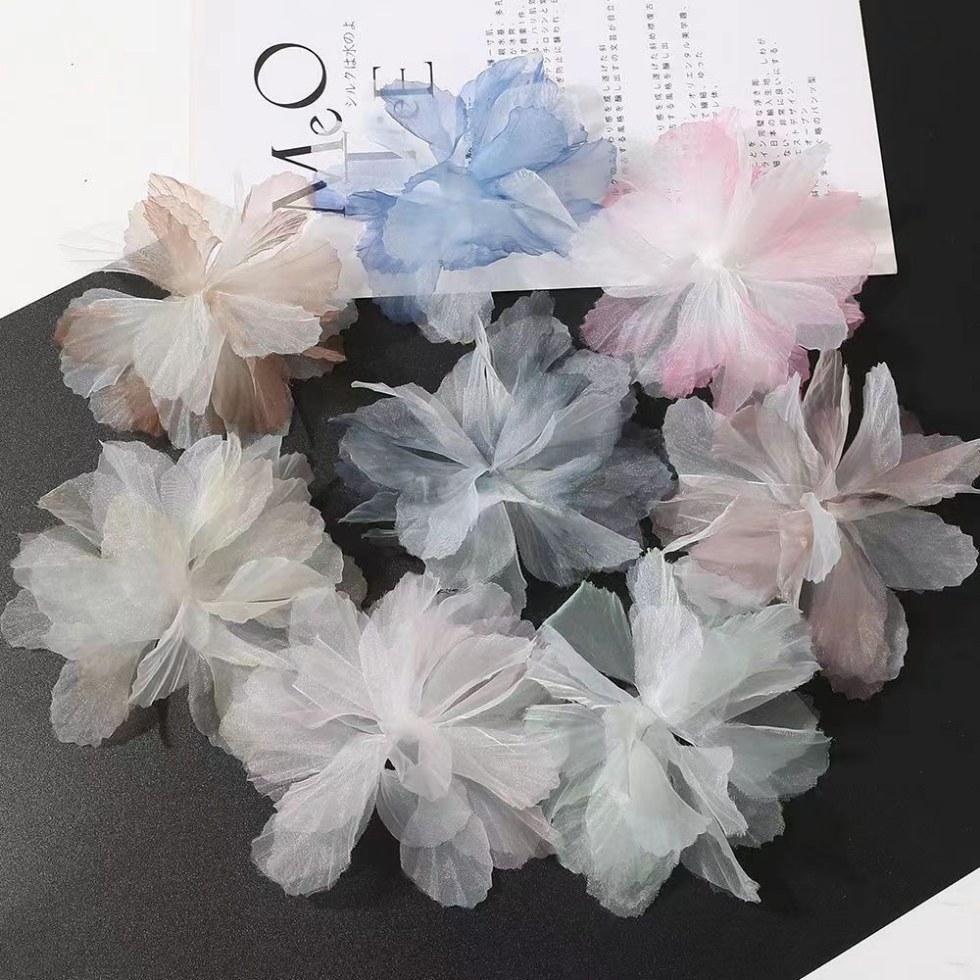 现货14cm欧根纱渐变立体花朵DIY婚纱礼服装辅料头饰鞋帽蛋糕装饰