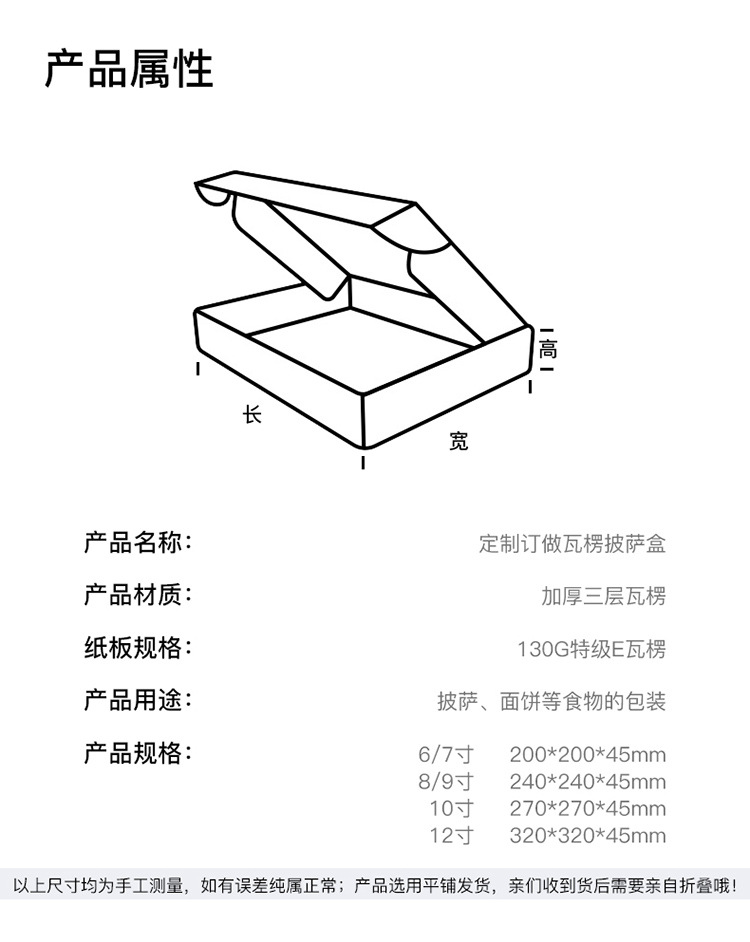 現物ピザ箱6/7/8/9/10/12インチ焙煎包装箱段ボール材質宅配ピザ箱
