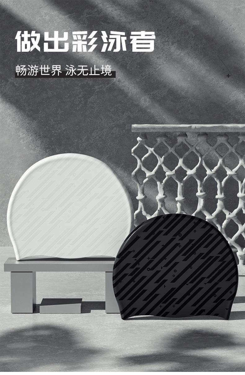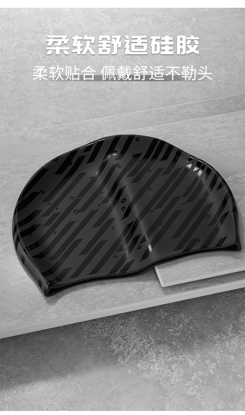 メンズシリコン水泳帽 防水 快適 頭を締め付けない 大きめ 耳保護 おしゃれなストライプ柄 水泳帽 卸売 流行