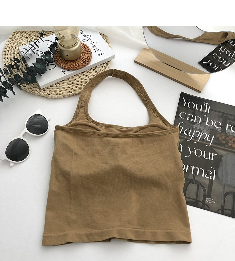 人気の甘いホットガールホルターネックハイカラーサスペンダーバックベスト、胸パッド付き、胸を包み、ボトムスとして着用できるショートチューブトップ