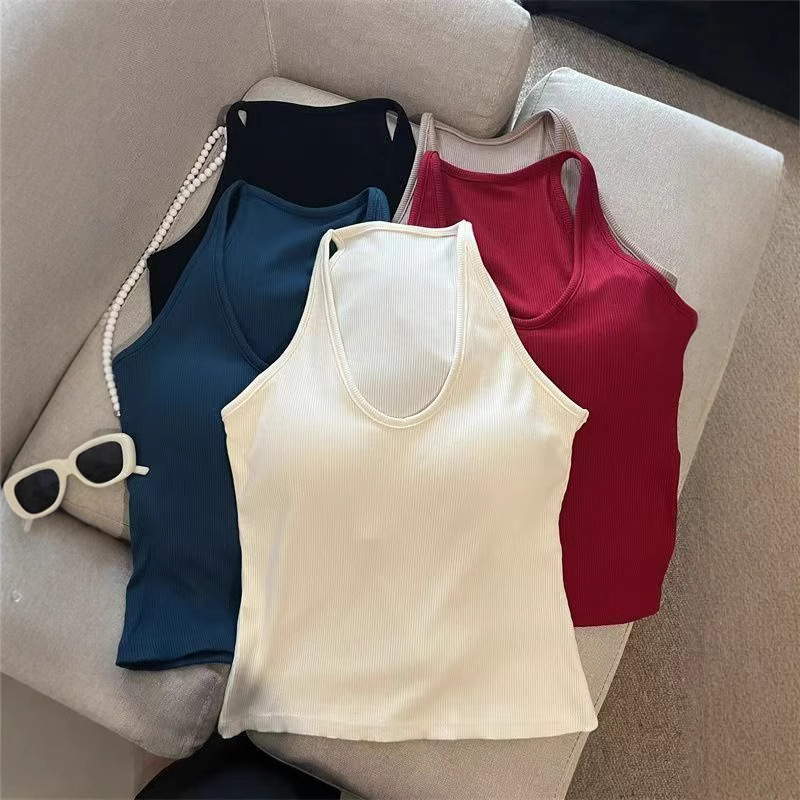 新商品は胸パッド付きの純色のショートタイプで、首のベストを掛けます。