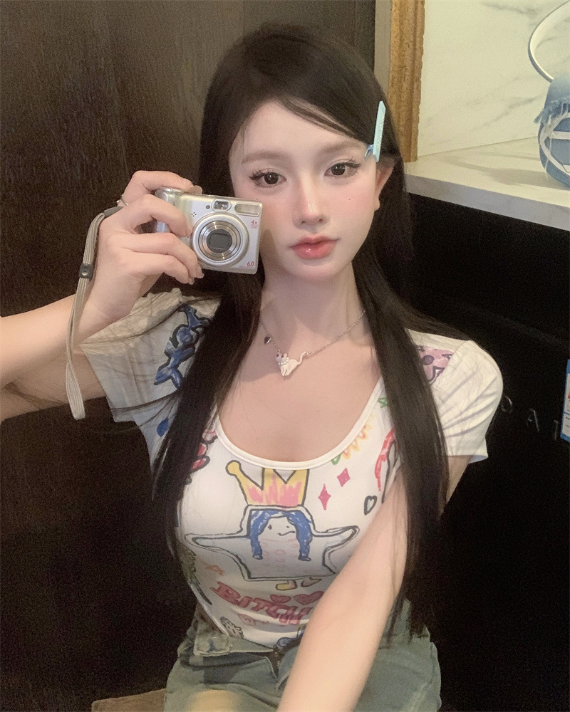 純粋な欲望スタイルのセクシーなレースステッチ V ネック半袖 T シャツ女性の夏のデザイン痩身ショートトップ
