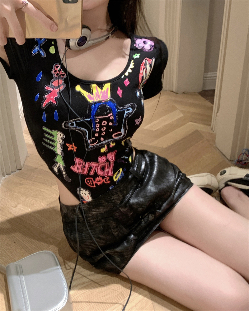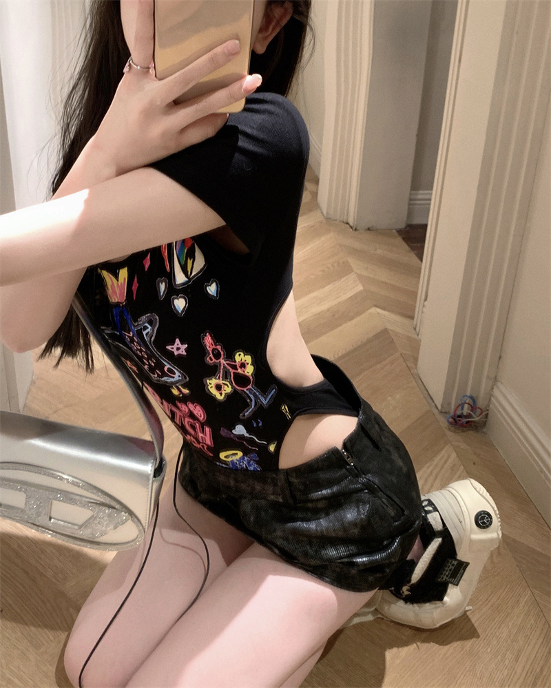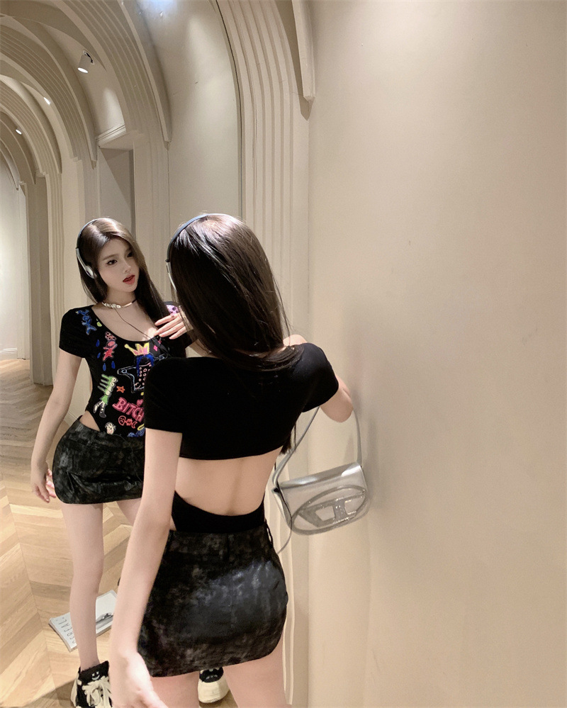 ファッション高級感黒露背半袖ワンピース女性夏の新型ギャルガードル