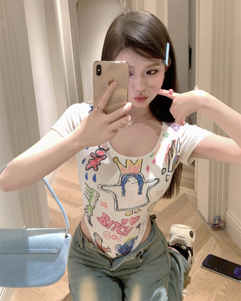 アメリカのセクシーなギャルのアルファベットのプリントの長袖のtシャツの女性の秋冬の新型の修身はやせています。