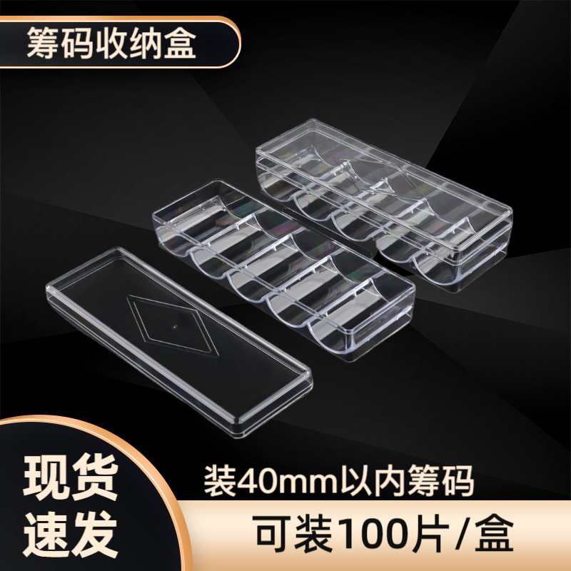 100枚のチップケースを入れることができます。徳州トランプ透明カード盤チップホルダーのポイント収納ケースです。