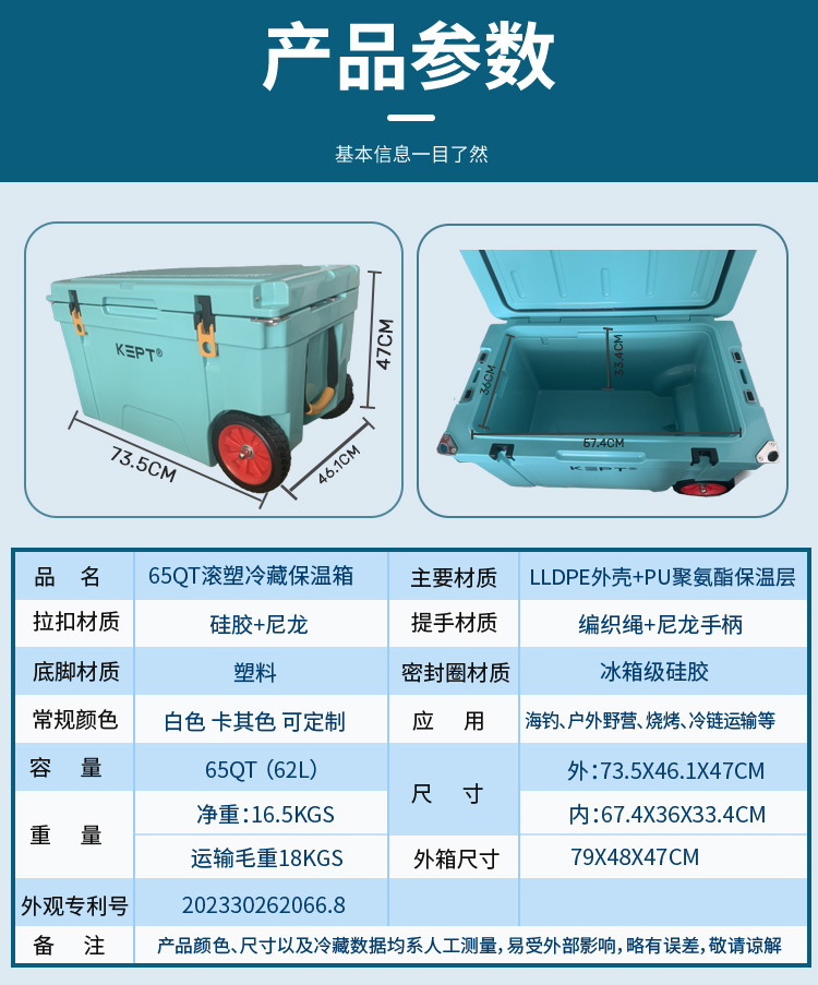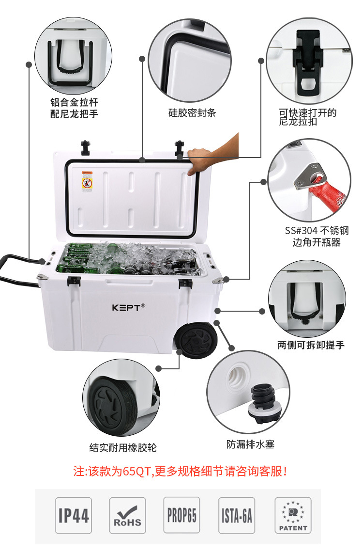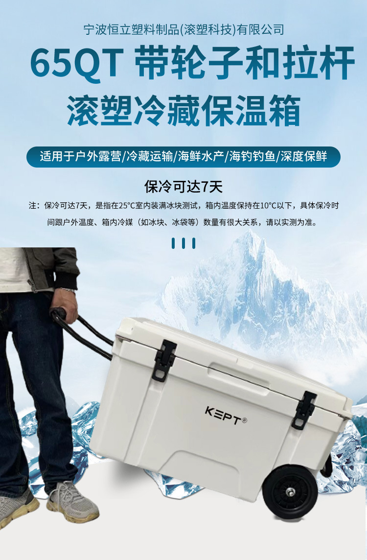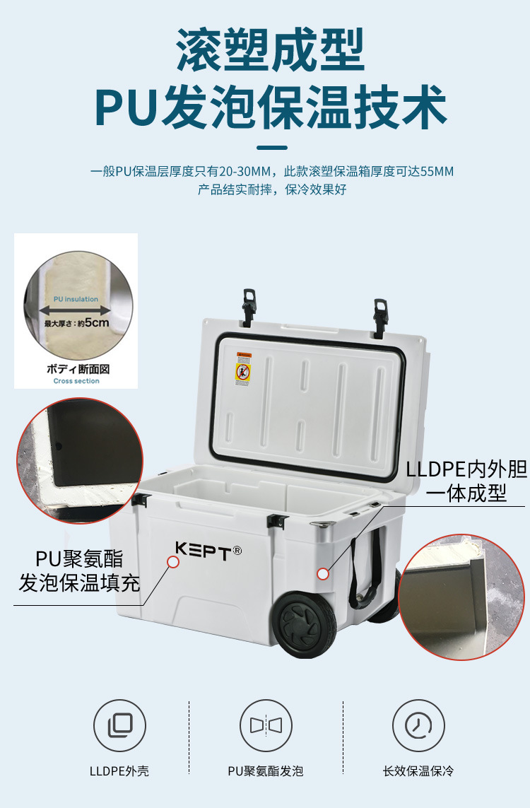 大容量携帯型タイロッド付き車輪62lロール冷蔵箱恒温箱保温箱
