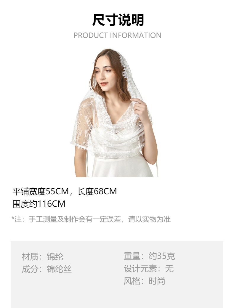 国境を越えたアマゾンスペインの白い頭糸の頭レース帽単層円形スカーフ教会の頭飾り