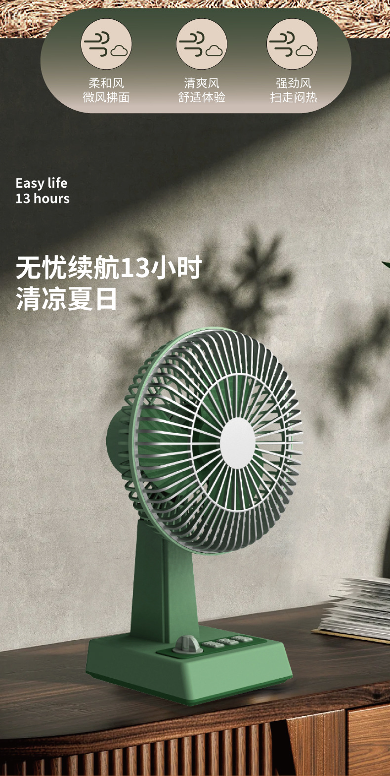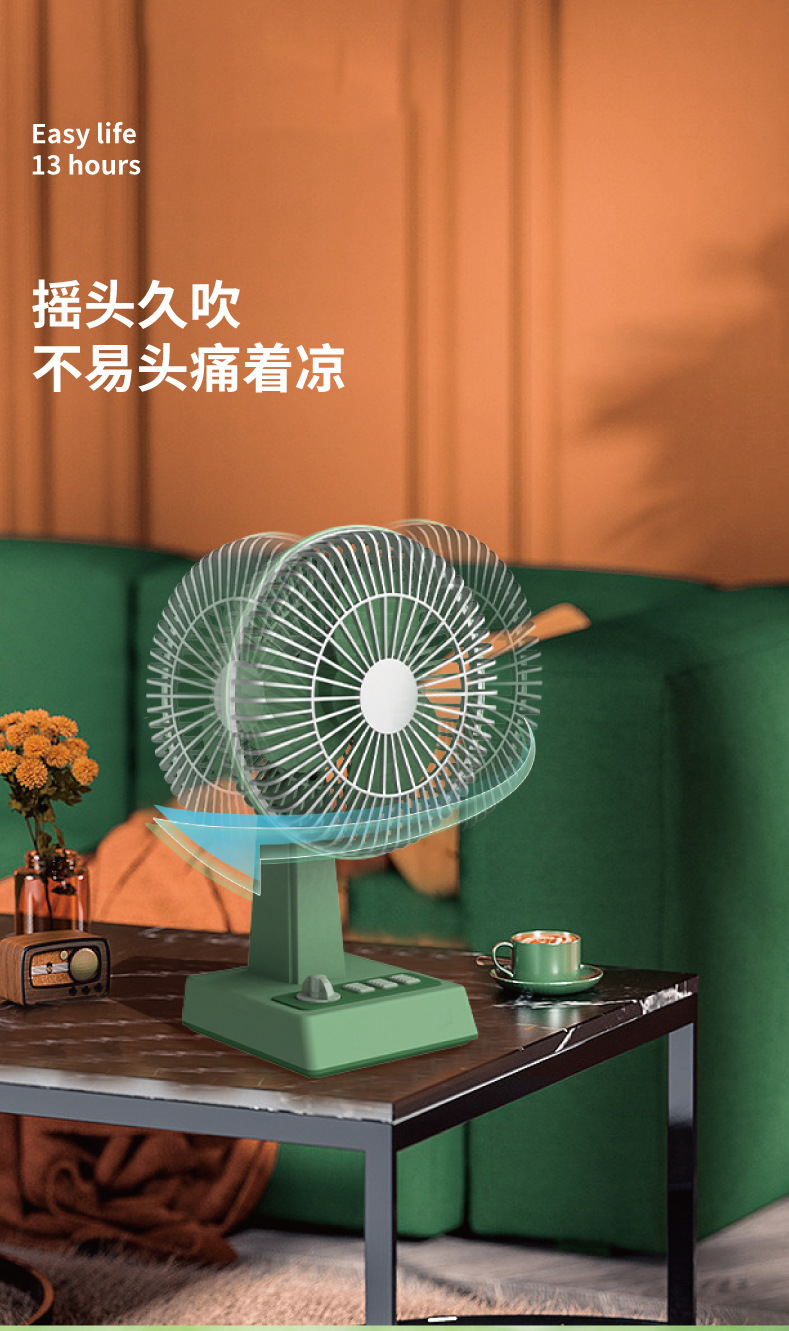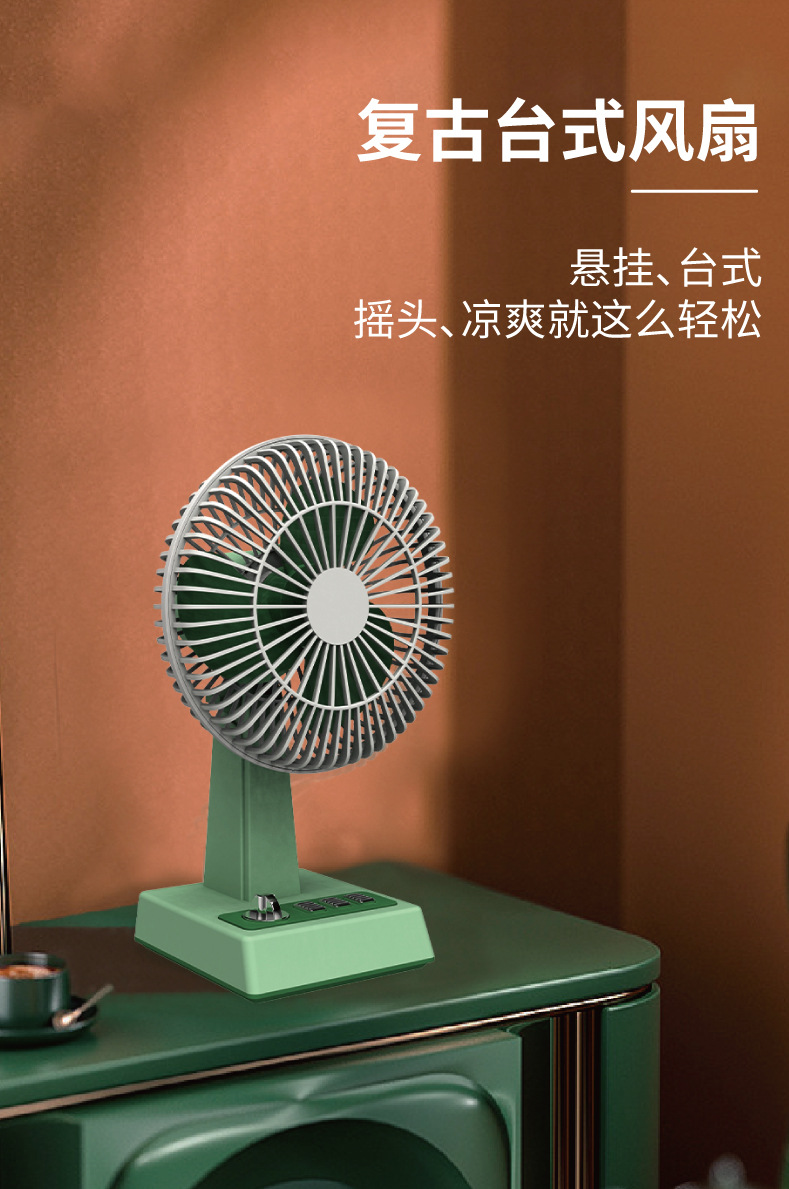 復古風デスクトップファンusb充電大風力静音寮オフィスデスクトップ首振り小型扇風機