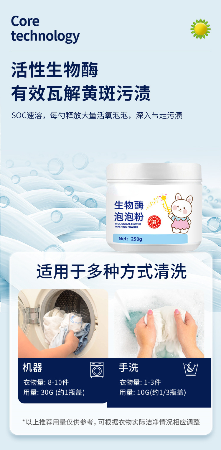 生物酵素泡粉活酸素泡洗粉洗濯汚れ除去爆発塩有酸素漂白剤黄増白神器