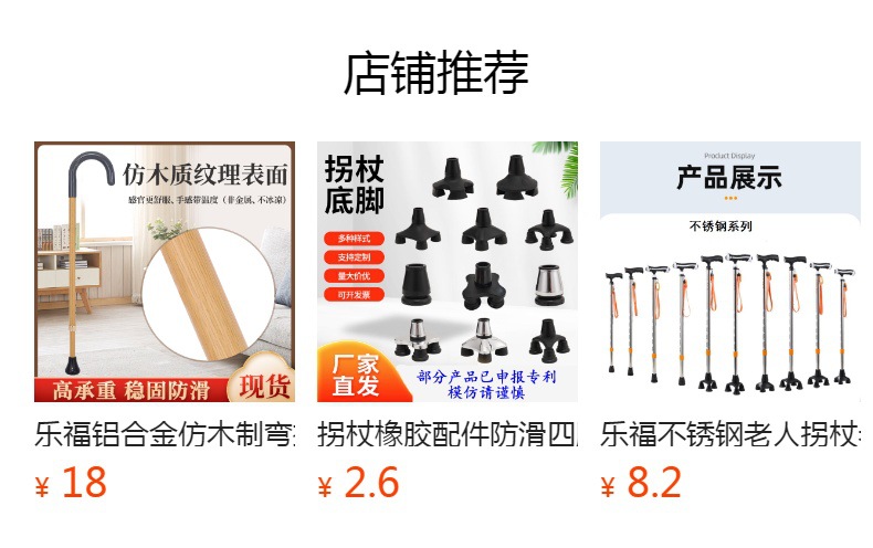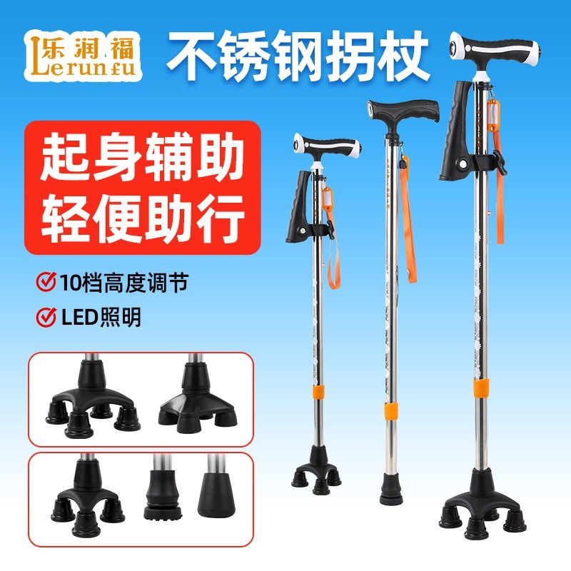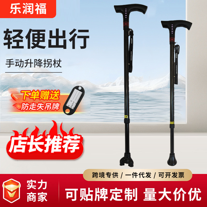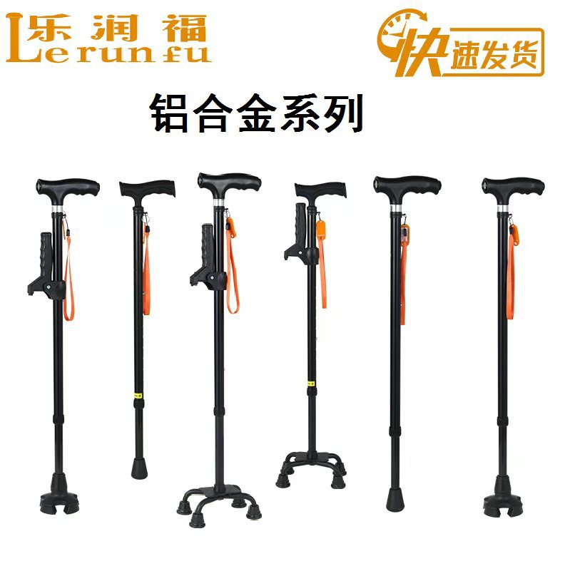 乐福アルミ合金製高齢者用軽量四脚杖、滑り止め付き伸縮式杖、ライト付き杖、メーカー卸売