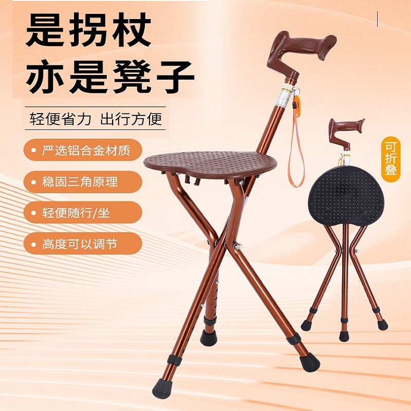 楽潤福(ルーランフ)全アルミ合金製杖椅子、座席付き杖、高さ調節可能な杖、歩行補助、高齢者用歩行杖