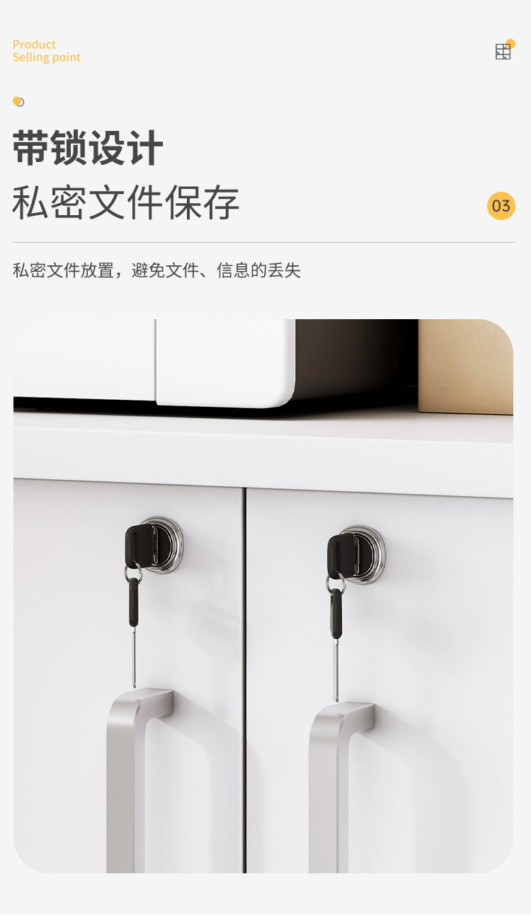 ファイルキャビネットのオフィスキャビネットにはロック付きのロッカーがあります。