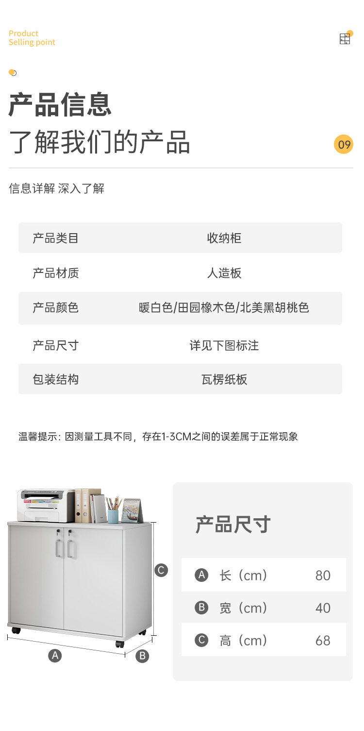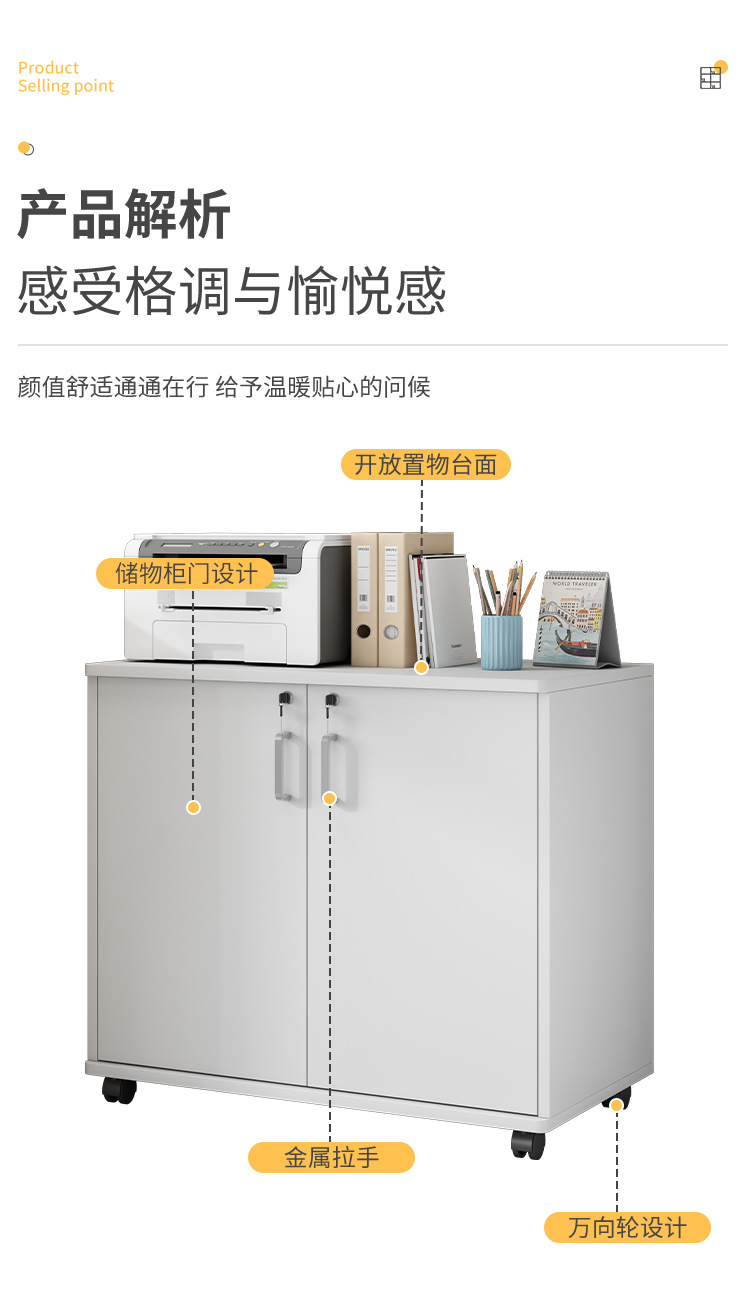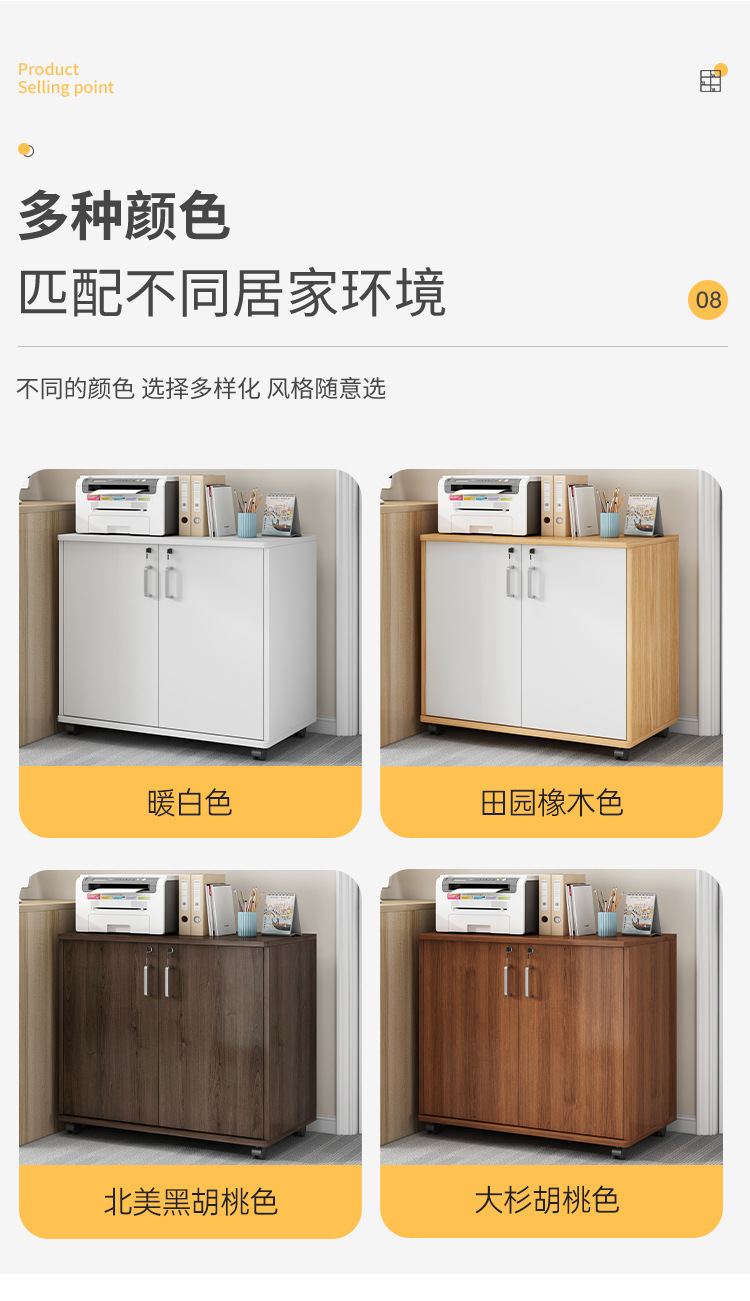 文件柜办公室带锁柜子移动收纳柜抽屉柜矮柜家用床头柜带轮储物柜
