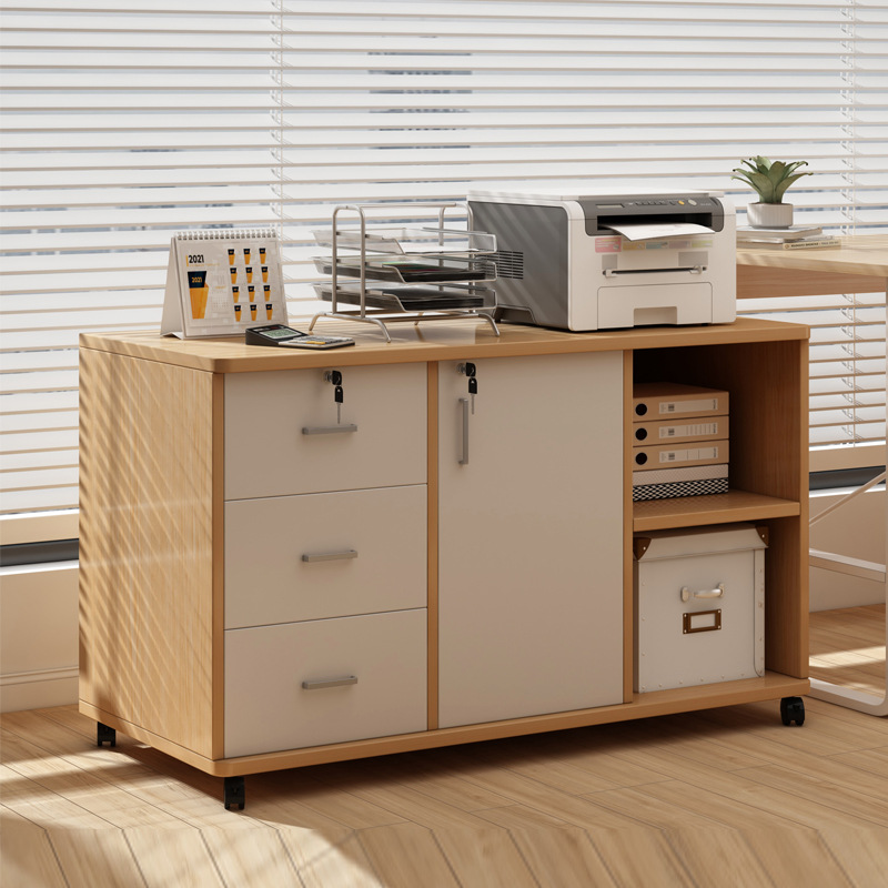 ファイルキャビネットオフィス移動サイドキャビネット木製ロック付き引き出しキャビネットデスク下収納低いキャビネットプリンタロッカー