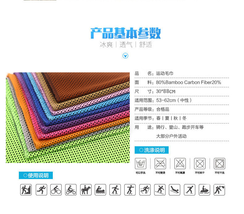 可以甩出“冰”的毛巾;无论热水、自来水、汗水,只要有水,浸湿后,甩一甩,3秒速冷,可重复使用,冷感效果,轻薄透气,吸湿排热,瞬间冷感。