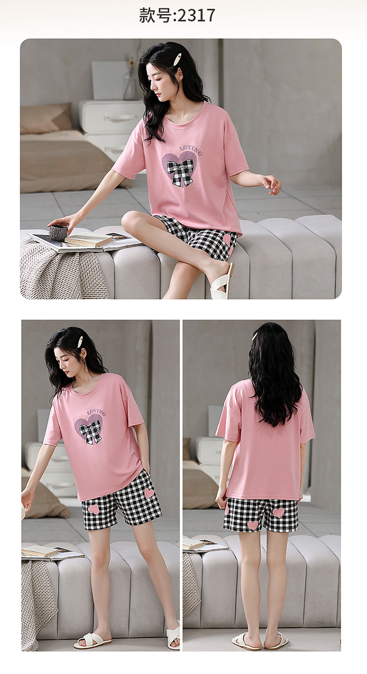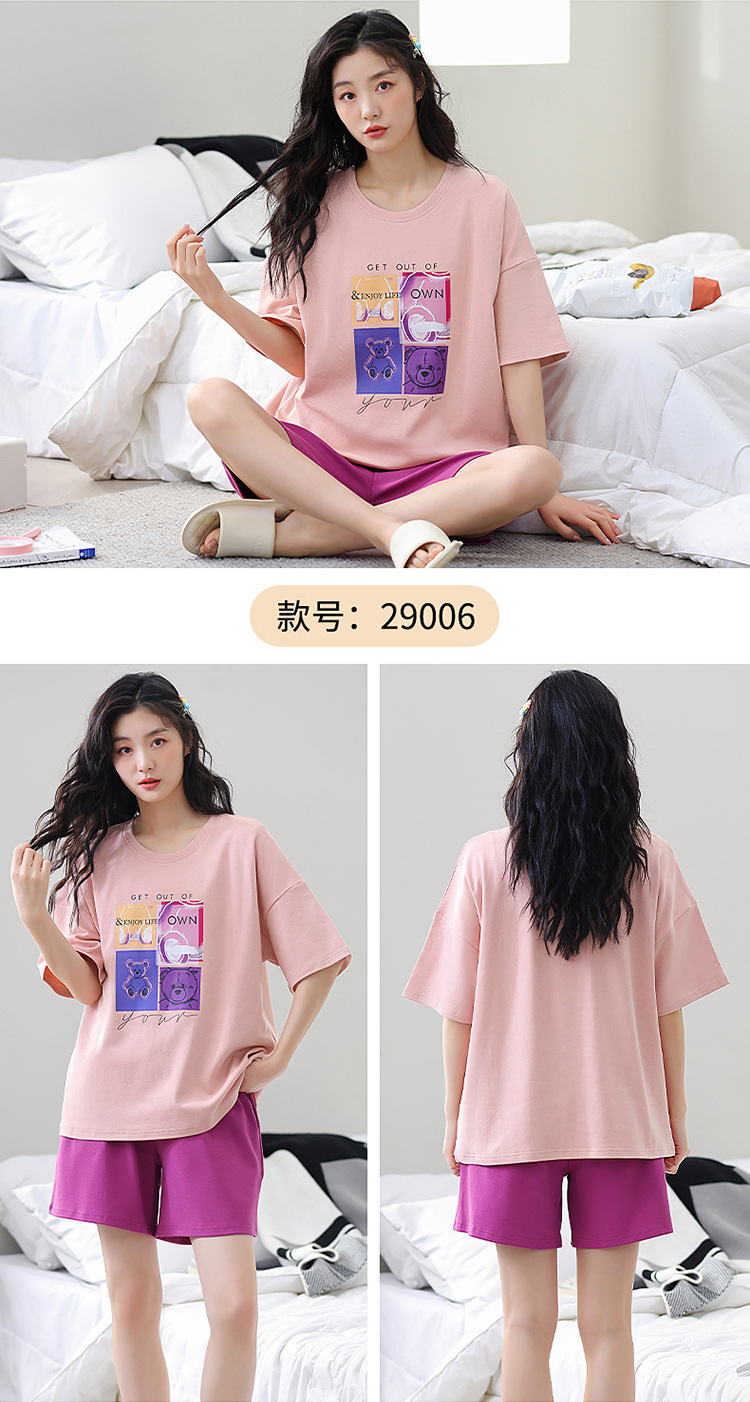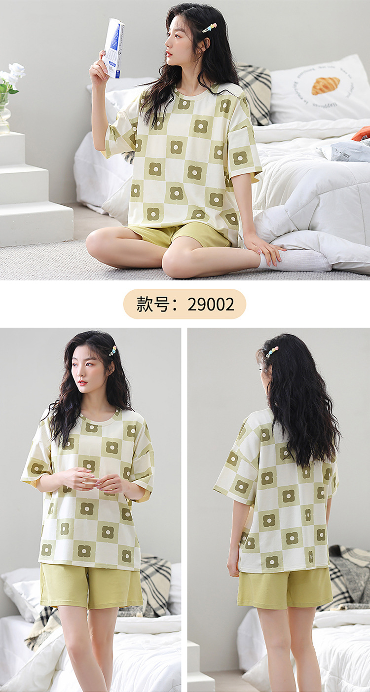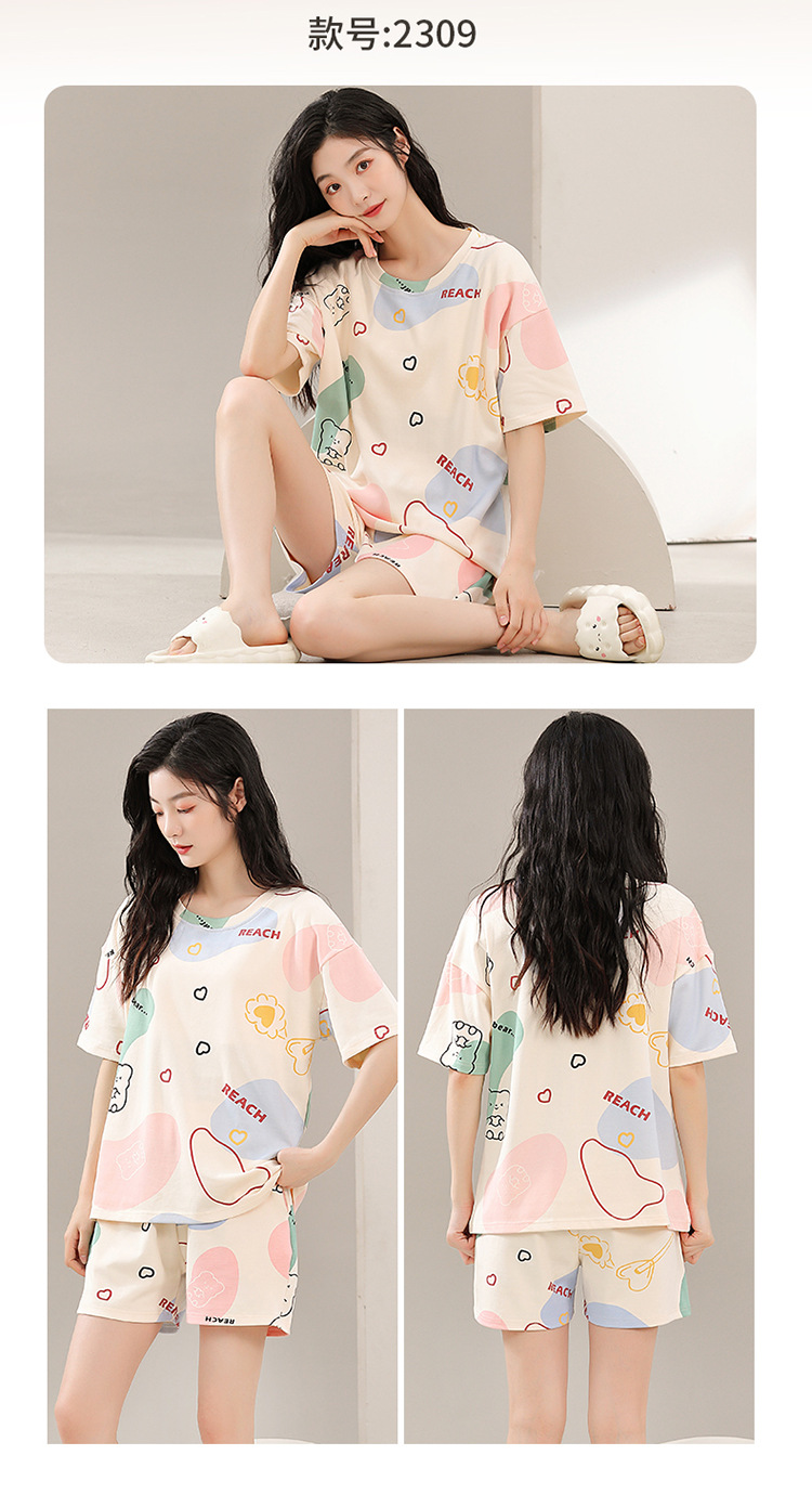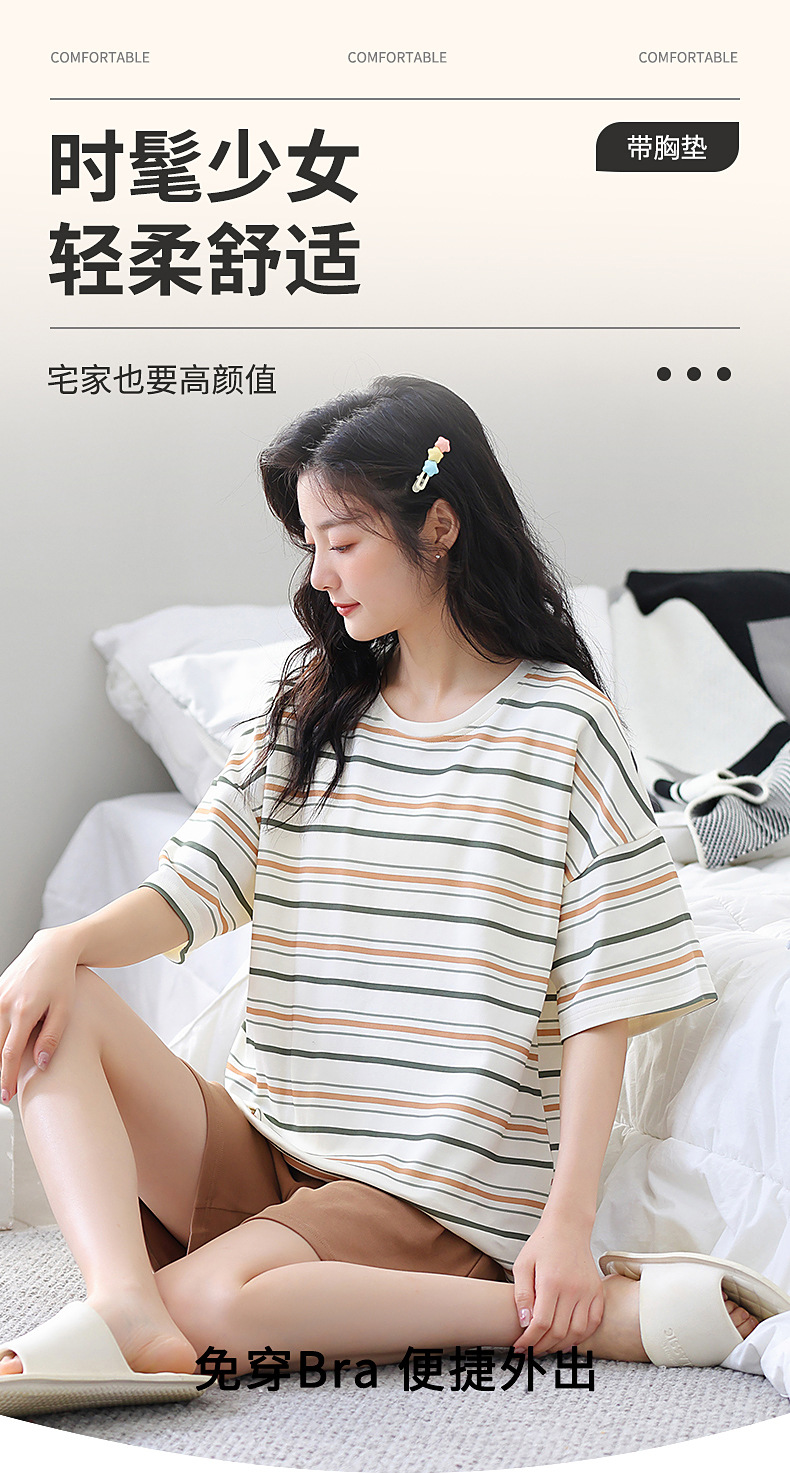 胸パッド付き半袖パジャマ女性丸首カバー少女大サイズ