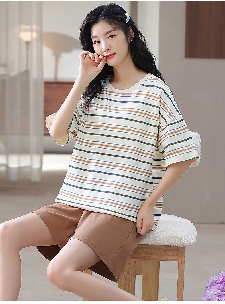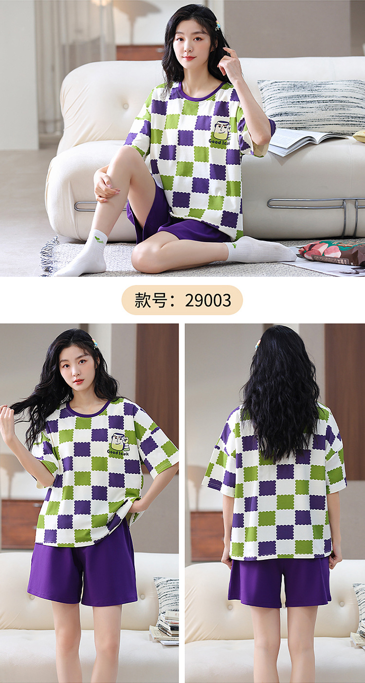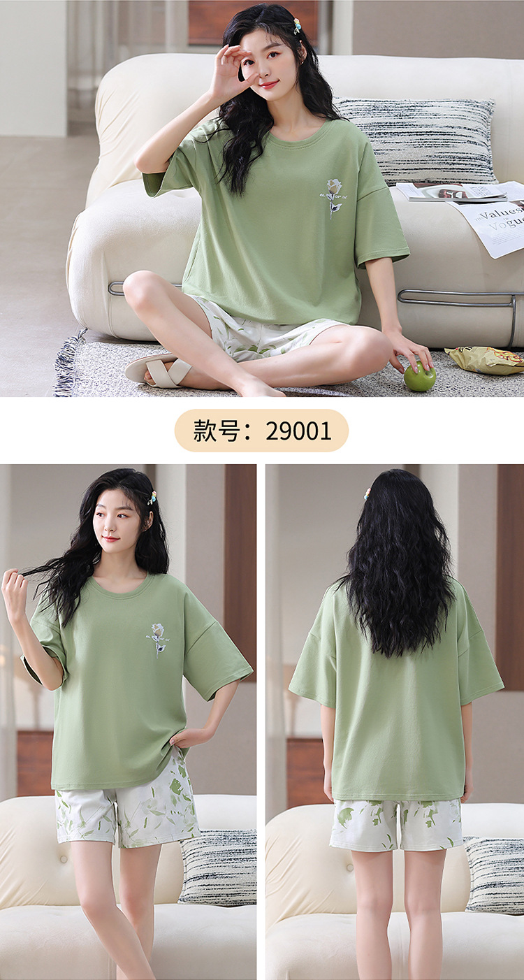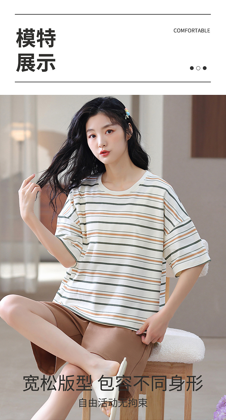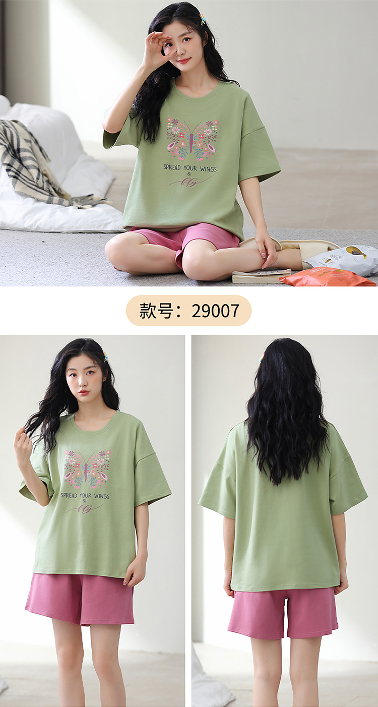 胸パッド付き半袖パジャマ女性丸首カバー少女大サイズ