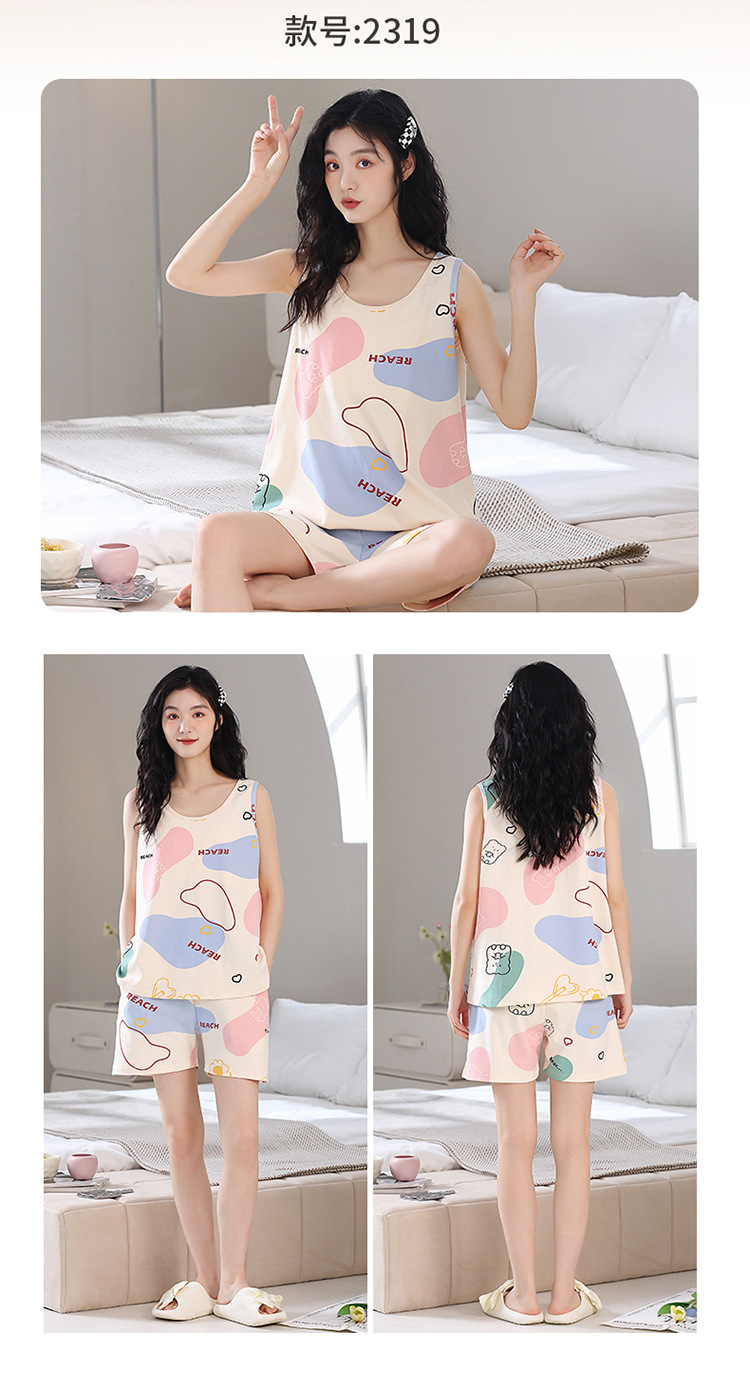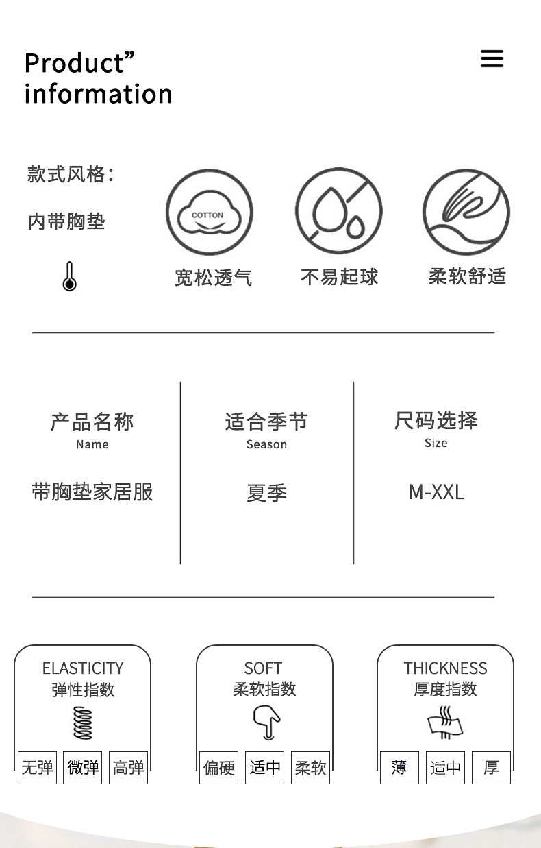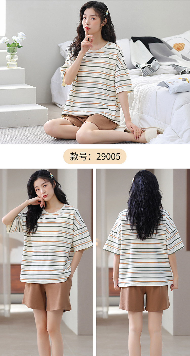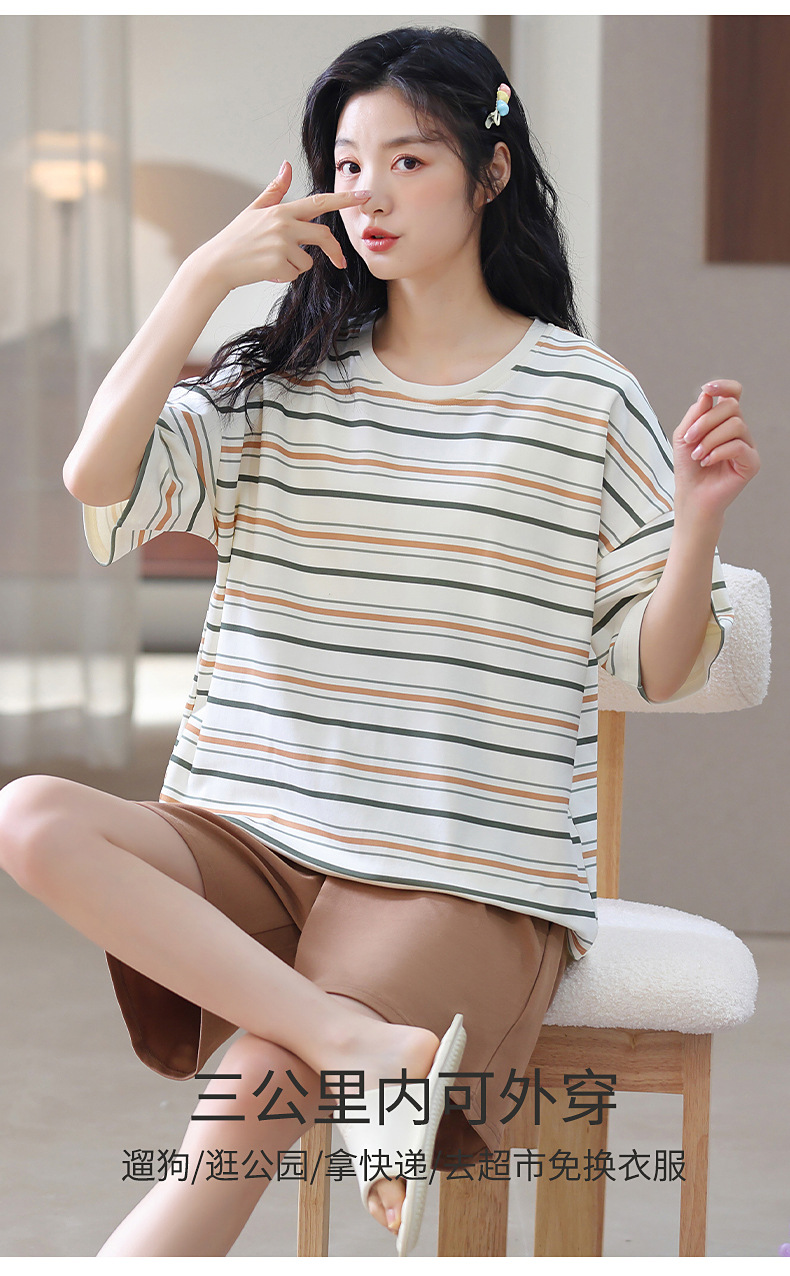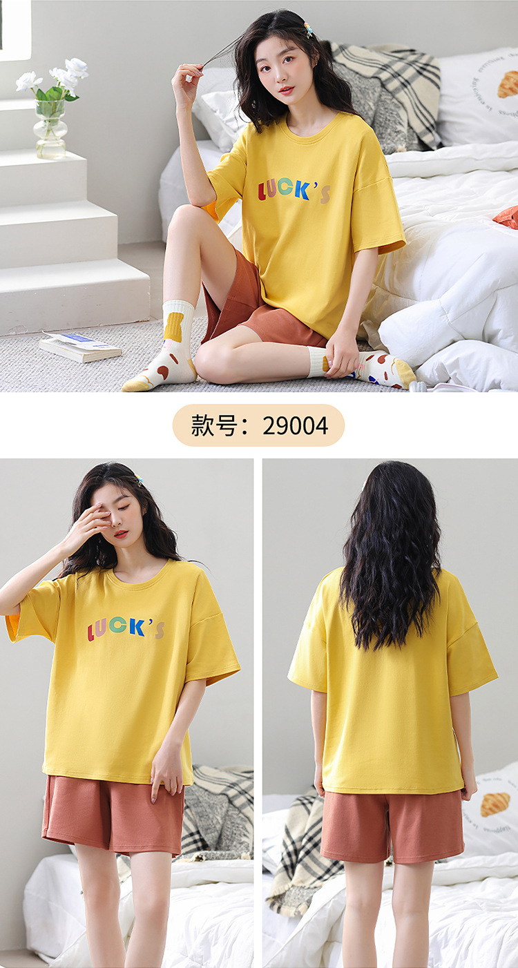 胸パッド付き半袖パジャマ女性丸首カバー少女大サイズ
