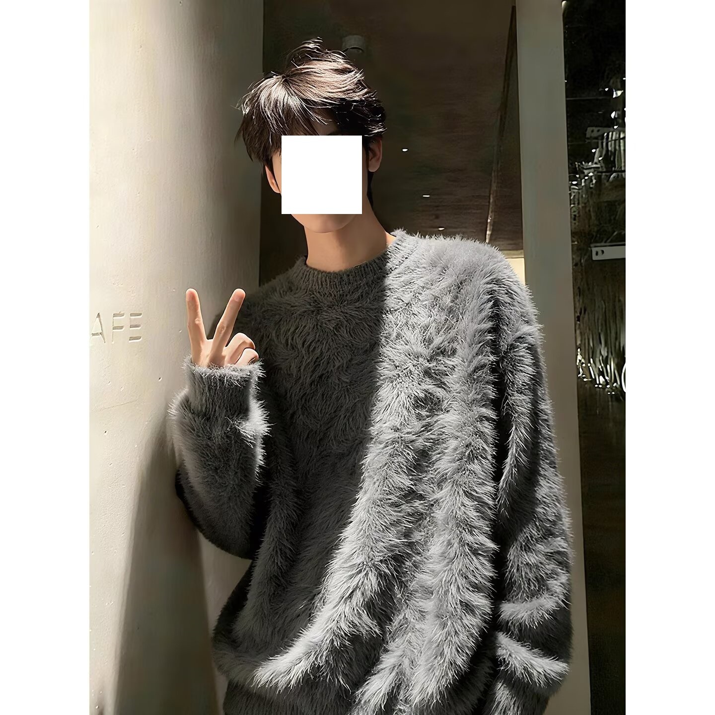马海毛茸茸软糯针织衫毛衣男款秋冬慵懒高级感白色内搭打底衫上衣
