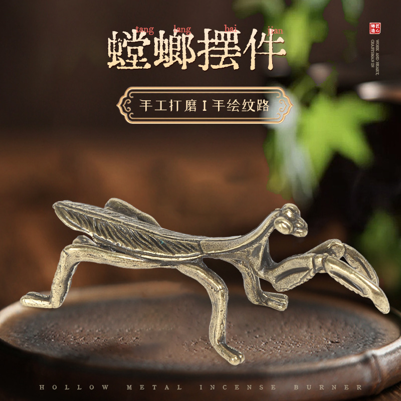 アンティーク工芸品の小さな置物カマキリミツバチ昆虫茶寵真鍮コオロギゴキブリアリ趣味甲虫装飾