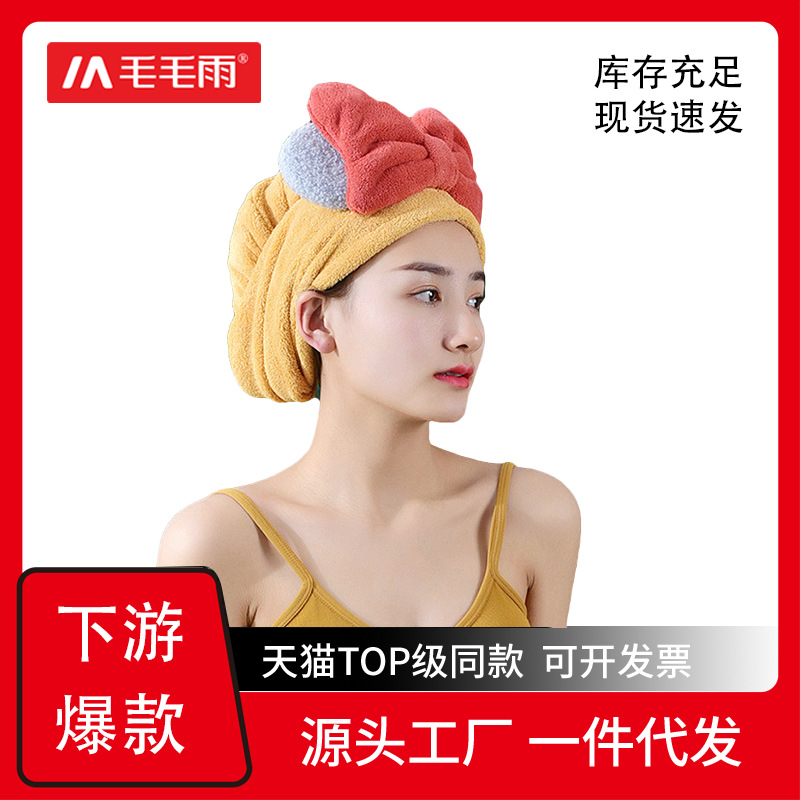 霧雨サンゴベルベット弓ドライヘアキャップ親子スタイル大人と子供シャワーキャップシャンプーとドライヘアタオルかわいい卸売
