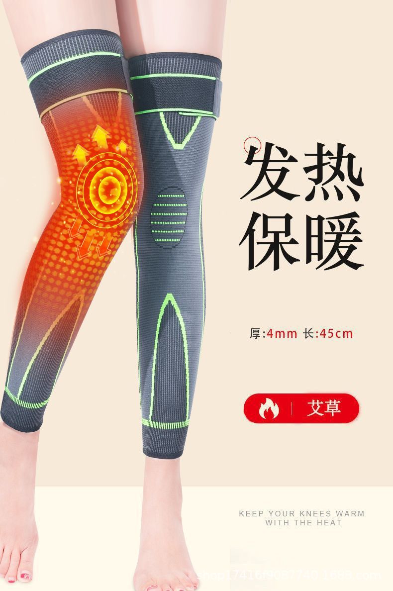 ロングタイプの草薙草(ヨモギ)膝当て、加圧保温膝当て、自己発熱膝保護カバー、滑り止め、冬用防寒、男女兼用