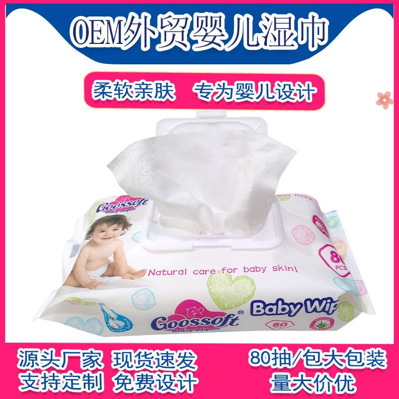 メーカー外国貿易輸出ベビーワイプ大型パック 80 ポンプカバー付きポータブルクリーニングベビーワイプ在庫卸売