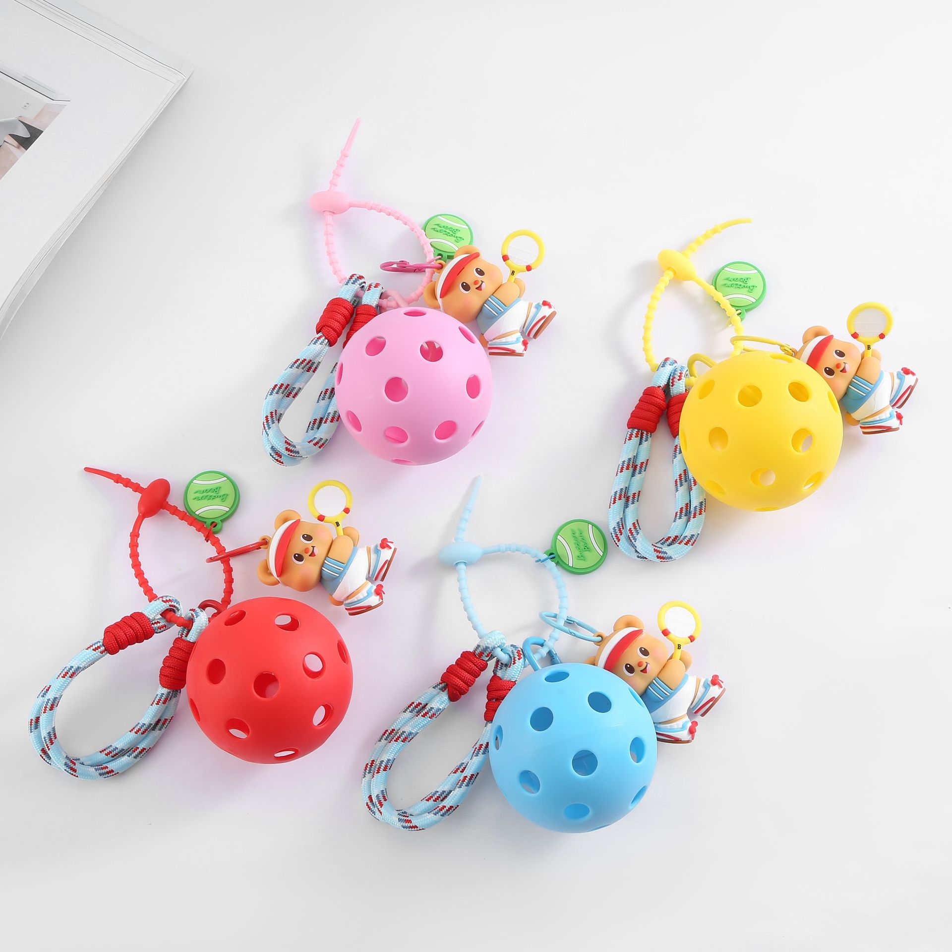 趣味匹克球钥匙扣创意挂饰匹克球文创黄油小熊公仔匹克球挂件