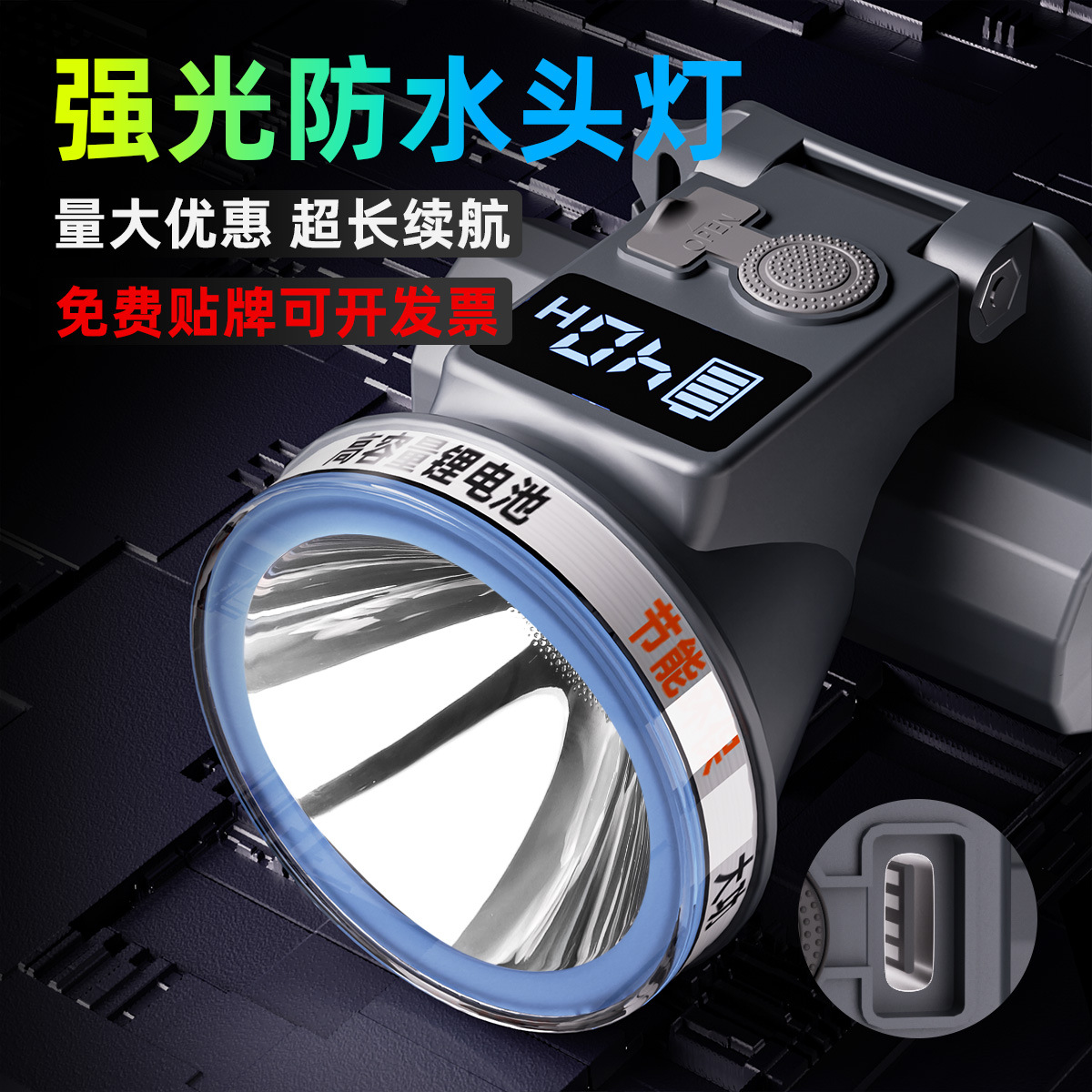 ヘッドライトの強い光が長く持続する高ルーメンリチウム電気屋外大容量釣りヘッドセットLED防水鉱山ランプ卸売り