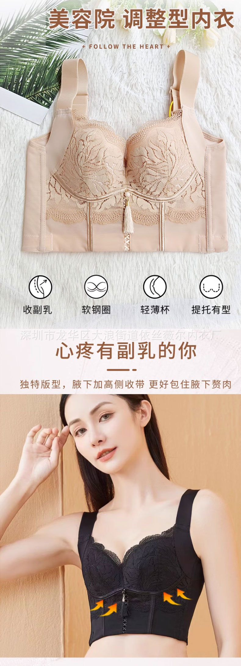 塑型内衣女小胸聚拢上托收副乳调整型文胸中薄款透气蕾丝女士胸罩