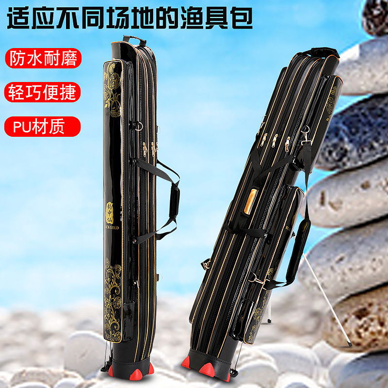 新款硬壳手竿包多功能双层三层渔具包大容量一体防水耐磨pu鱼竿包