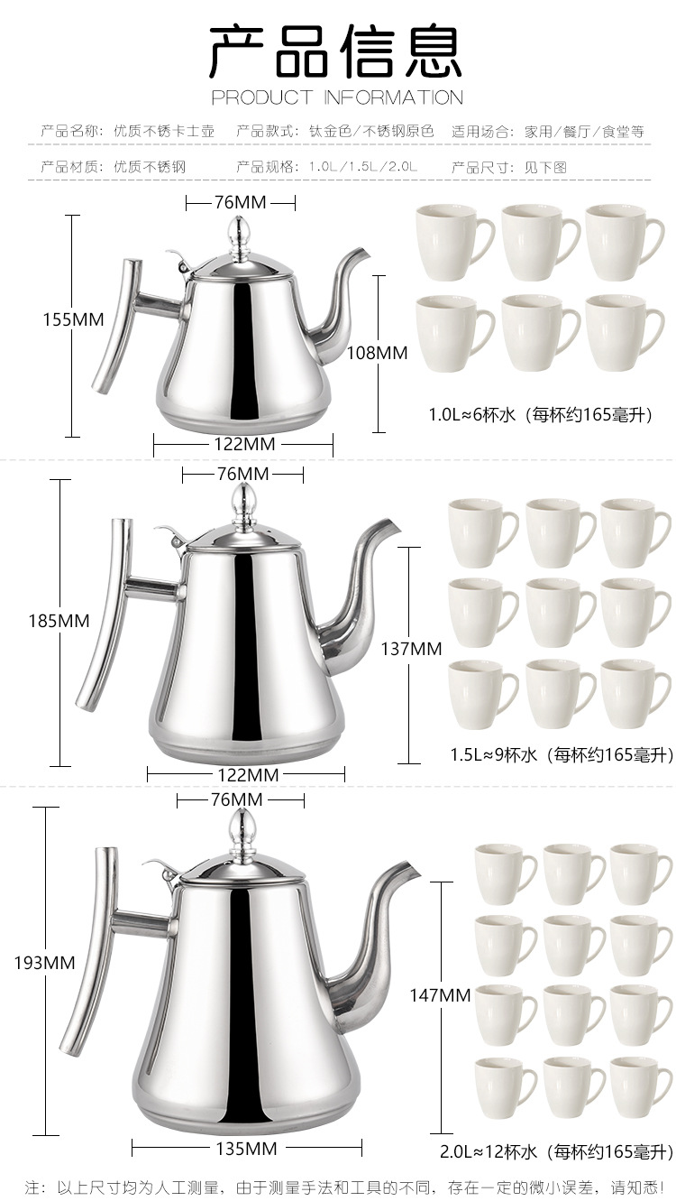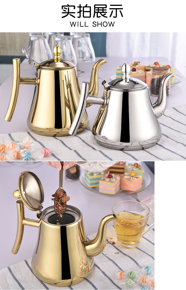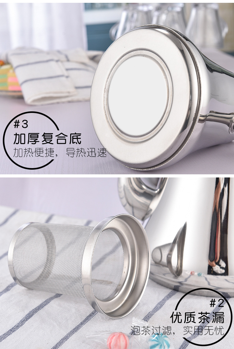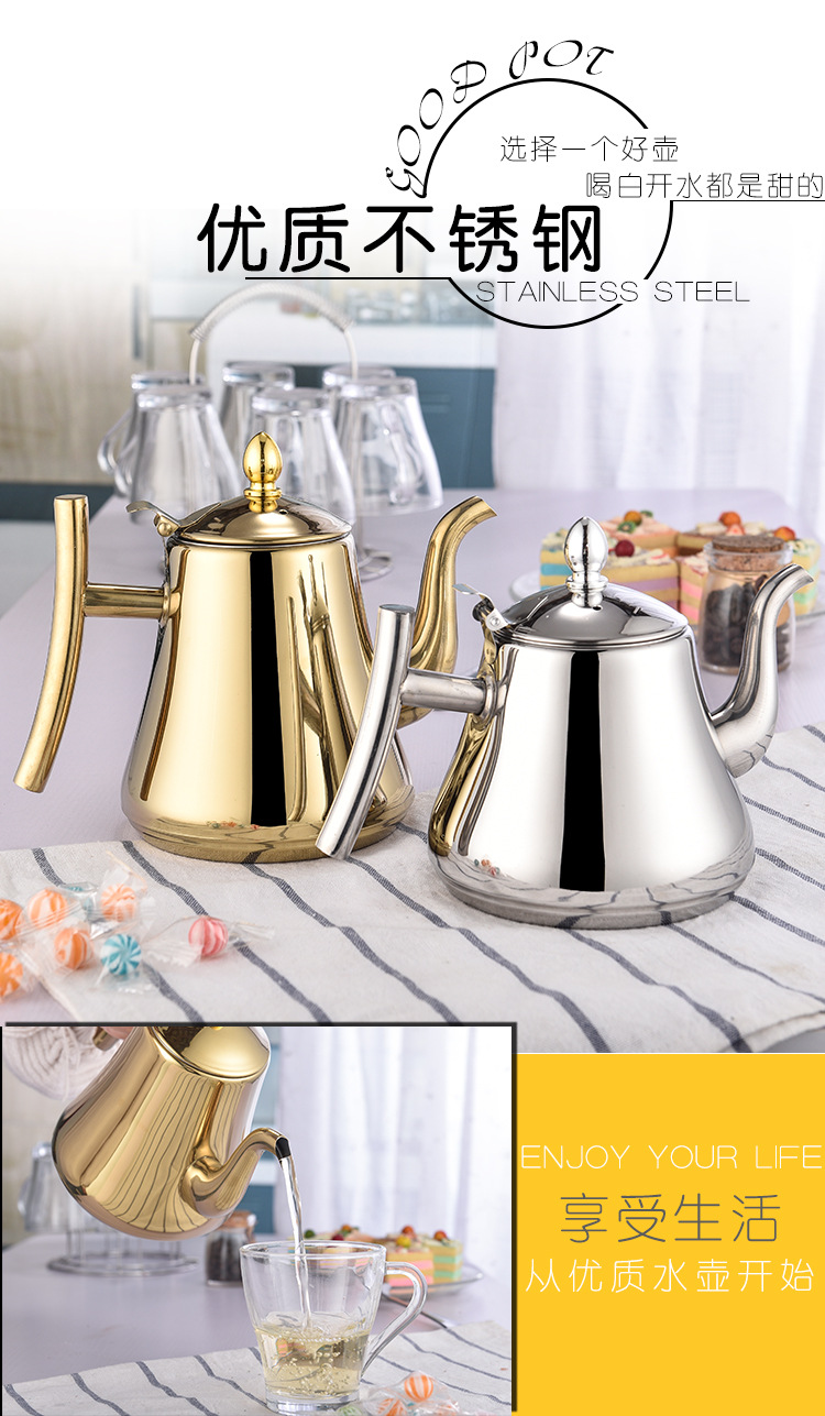 不锈钢茶壶带滤网餐厅饭店水壶电磁炉通用烧水壶家用泡茶壶花茶壶