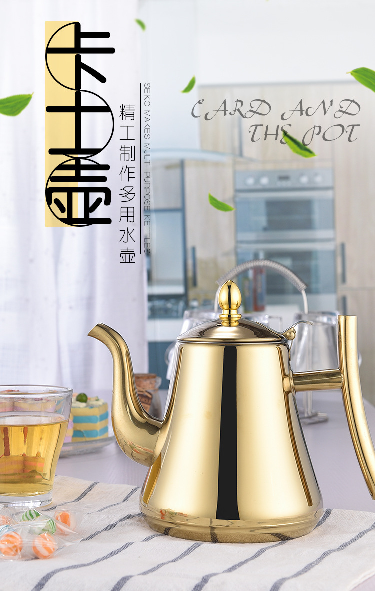 厚みのあるステンレス鋼のケトル、ティーポット、コーヒーポット、フィルター付きオイルポット、家庭用ティーポット、ユニバーサル平底ケトル