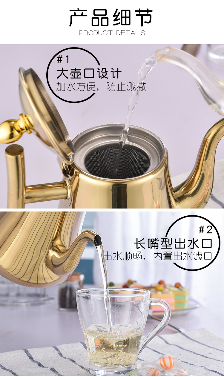 国境を越えたステンレス製カスケトル、フィルター付きコーヒーポット、ティーポット、フラワーティーポット、温冷水ポット、ホテル・レストラン卸売