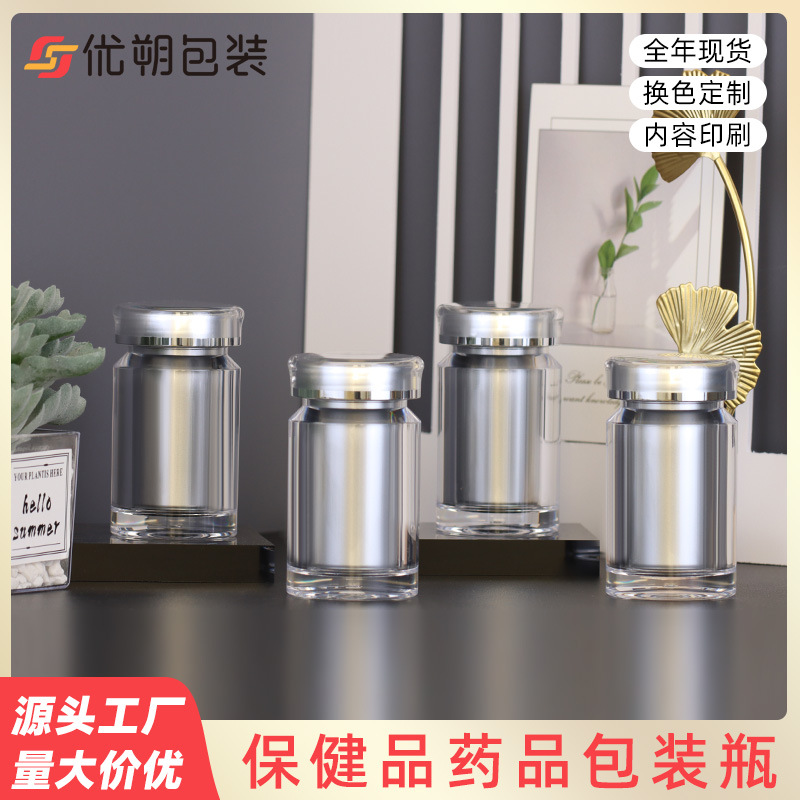 亚克力30粒药片胶囊包装瓶银色内胆双层塑料瓶60毫升保健品小药瓶