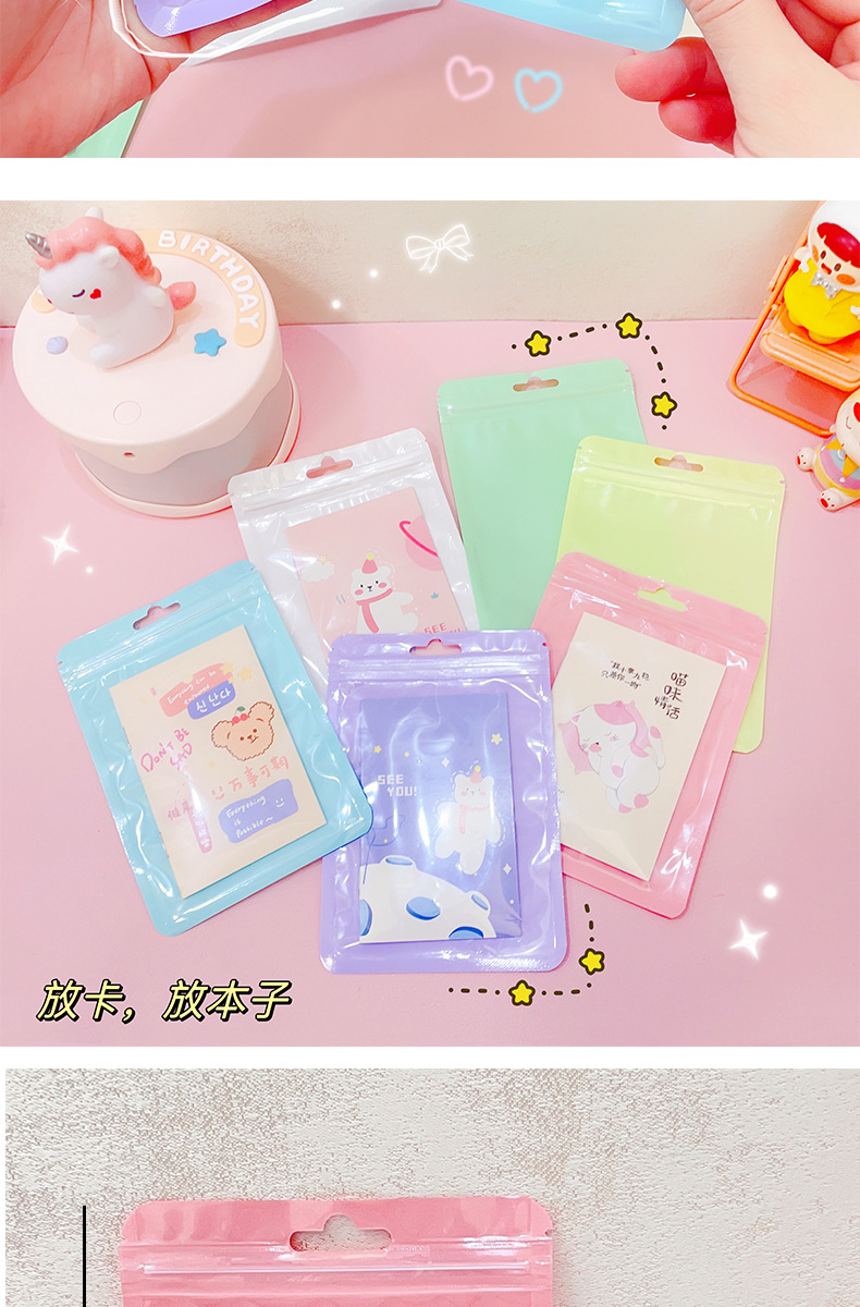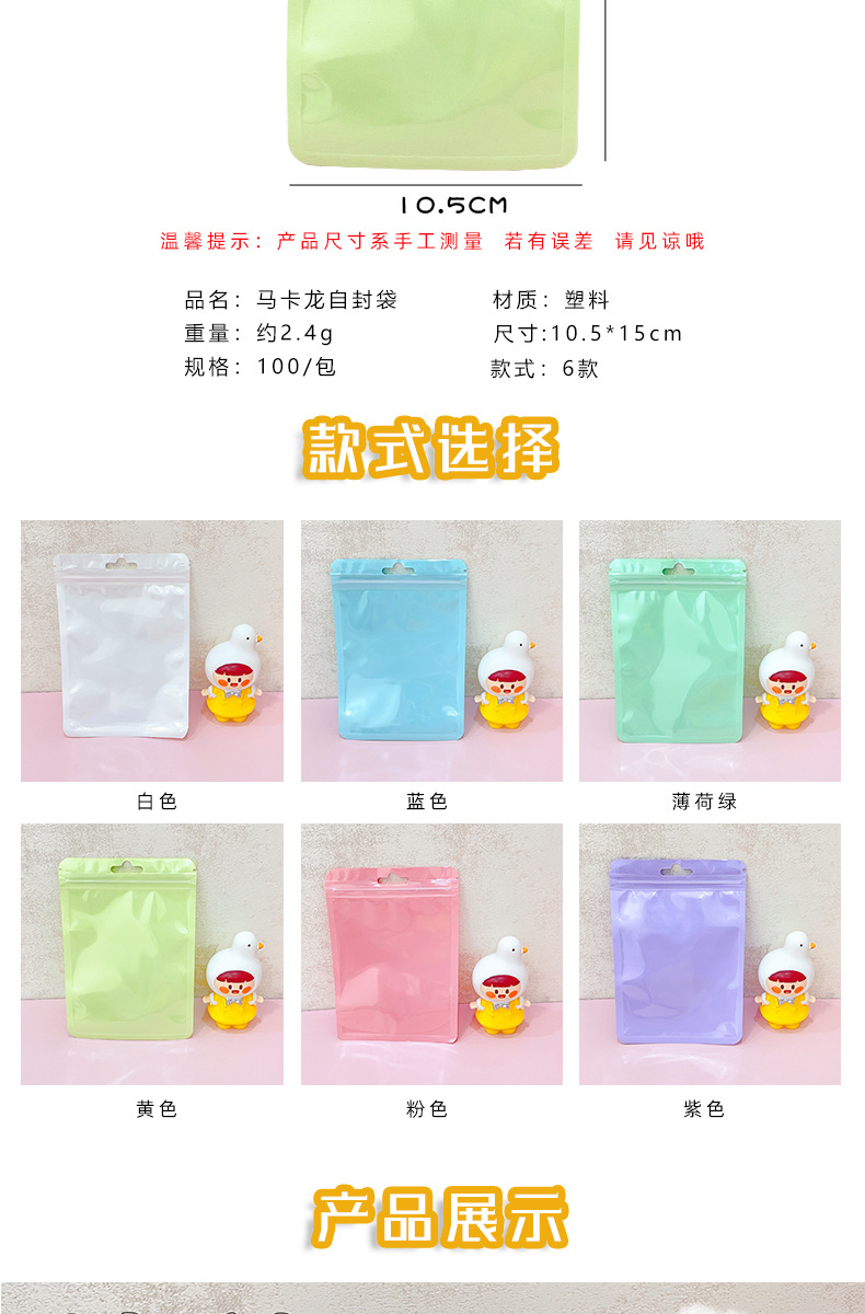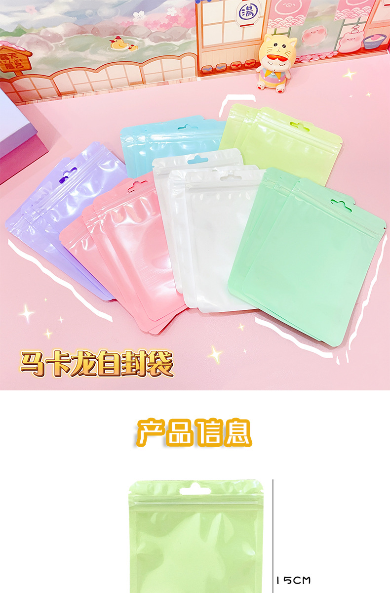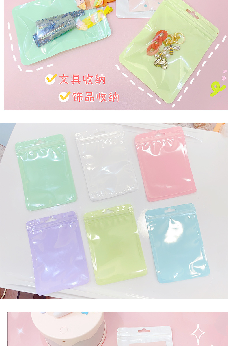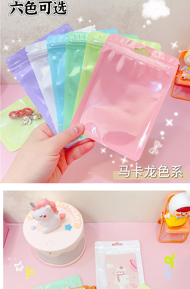マカロン色帯掛け穴付自封袋グッカード雑物小カード高颜値小アクセサリー収納密封袋包装袋