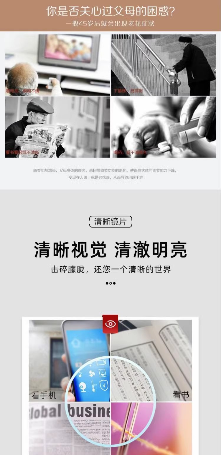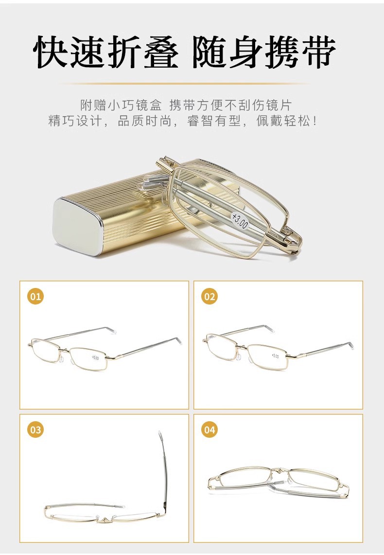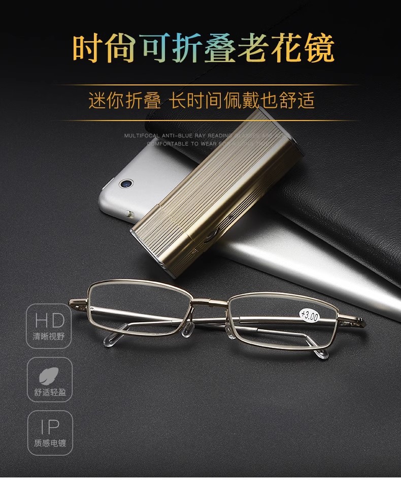 【ミニ折り畳み】高級贅沢な質感の高精細老眼鏡折り畳み式伸縮折り畳み式携帯クリア視野