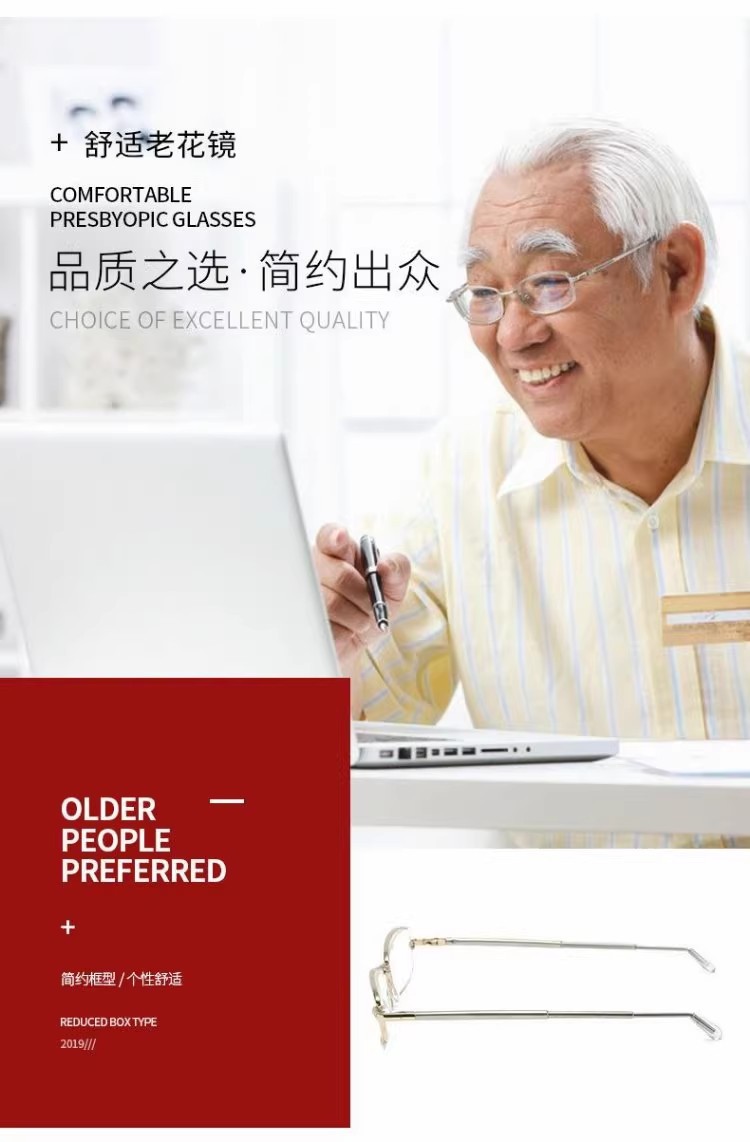 ビジネスハーフフレーム防ブルーライト老眼鏡超軽量小型フレームモデル老人鏡ファッション韓国版携帯高精細老眼鏡