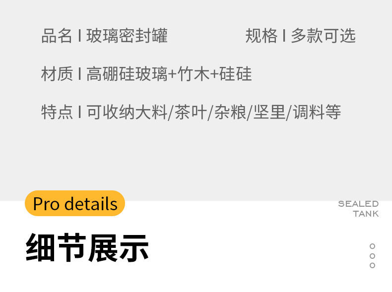 ガラスキッチン密封缶ガラス収納瓶ガラス缶高ホウ素シリコンガラス密封缶竹蓋ガラス密封缶