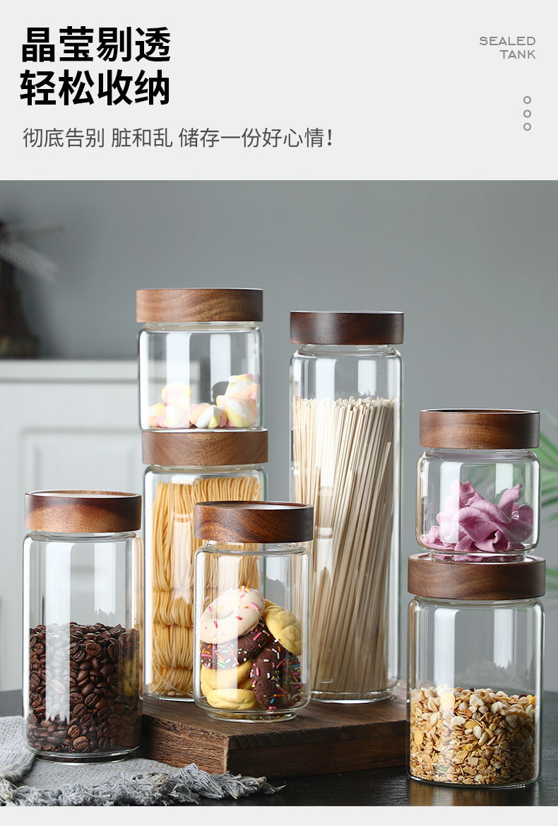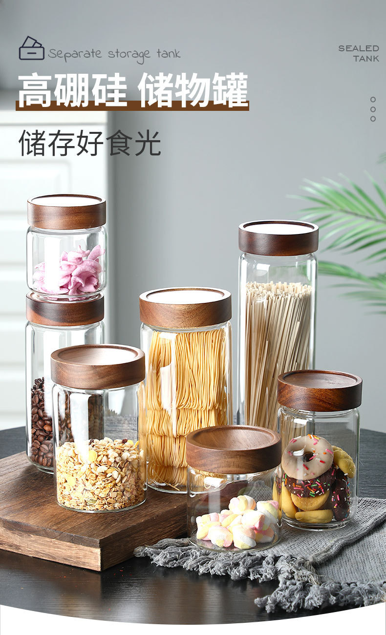 密封缶高ホウ素シリコン耐熱ガラス密封缶貯蔵タンク穴付きアカシア木蓋ガラス貯蔵タンククロスボーダー