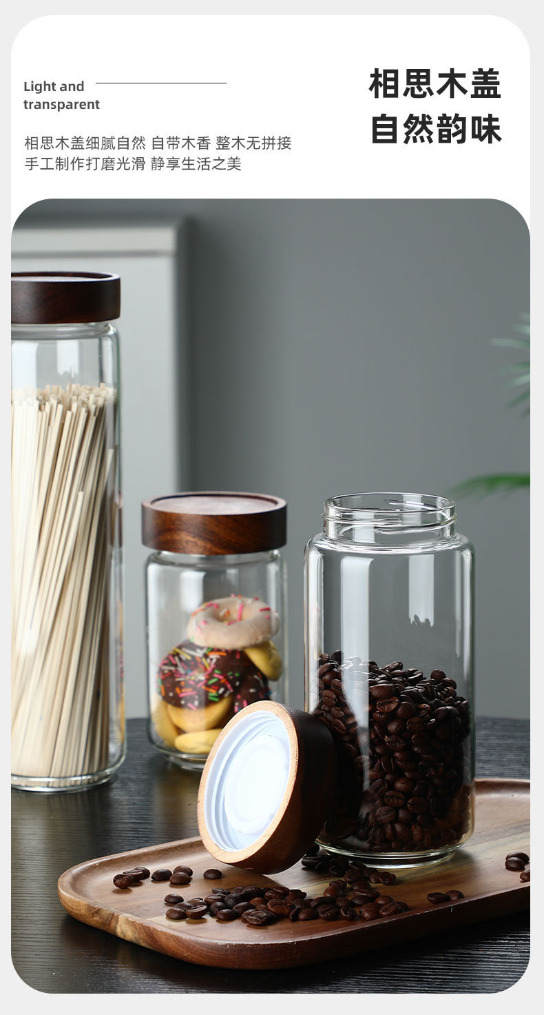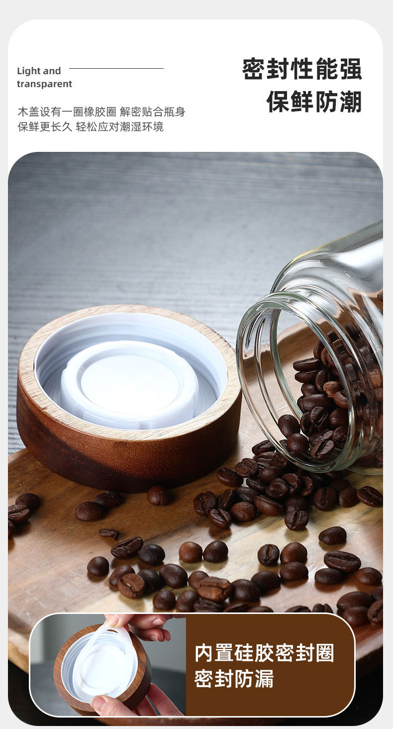 アカシア材蓋付きガラス保存瓶 キッチン コーヒー豆 茶葉保存瓶 アカシア材蓋付き瓶