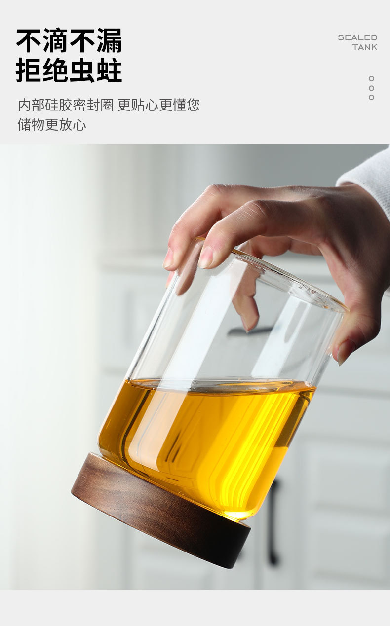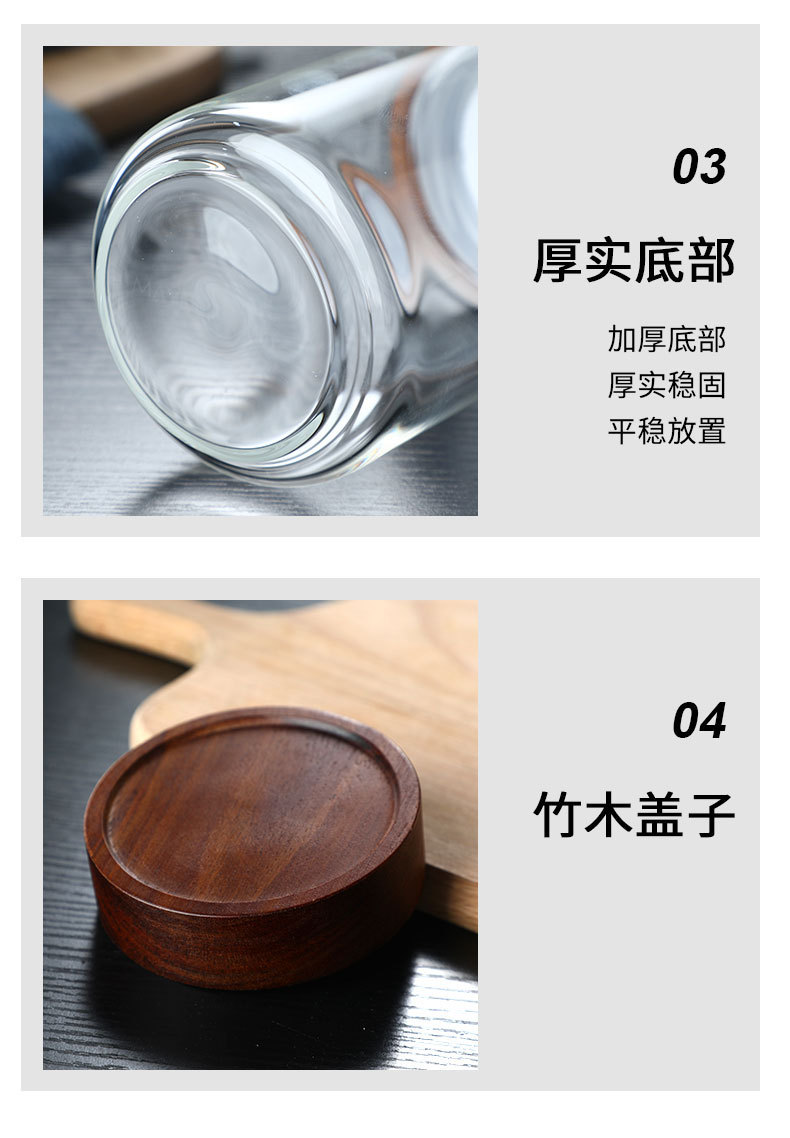 アカシア木製カバー高ホウケイ酸ガラス折りたたみ瓶キッチン用品密封ボトル保存瓶クロスボーダーガラス保存瓶