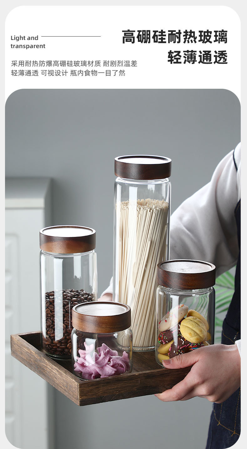 クロスボーダー保管防塵缶卸売高ホウケイ酸ガラス花茶保存缶アカシア木製蓋ネジガラス密封缶
