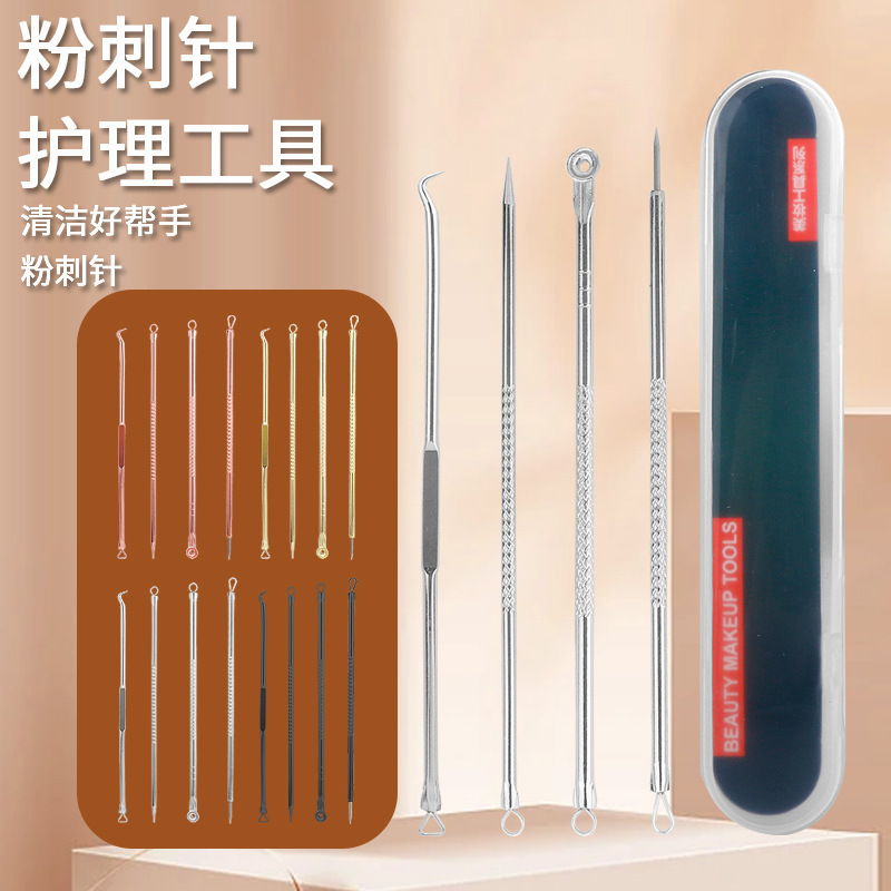 ニキビ針4点セット ステンレス製両頭黒ずみ針 ニキビケアツール