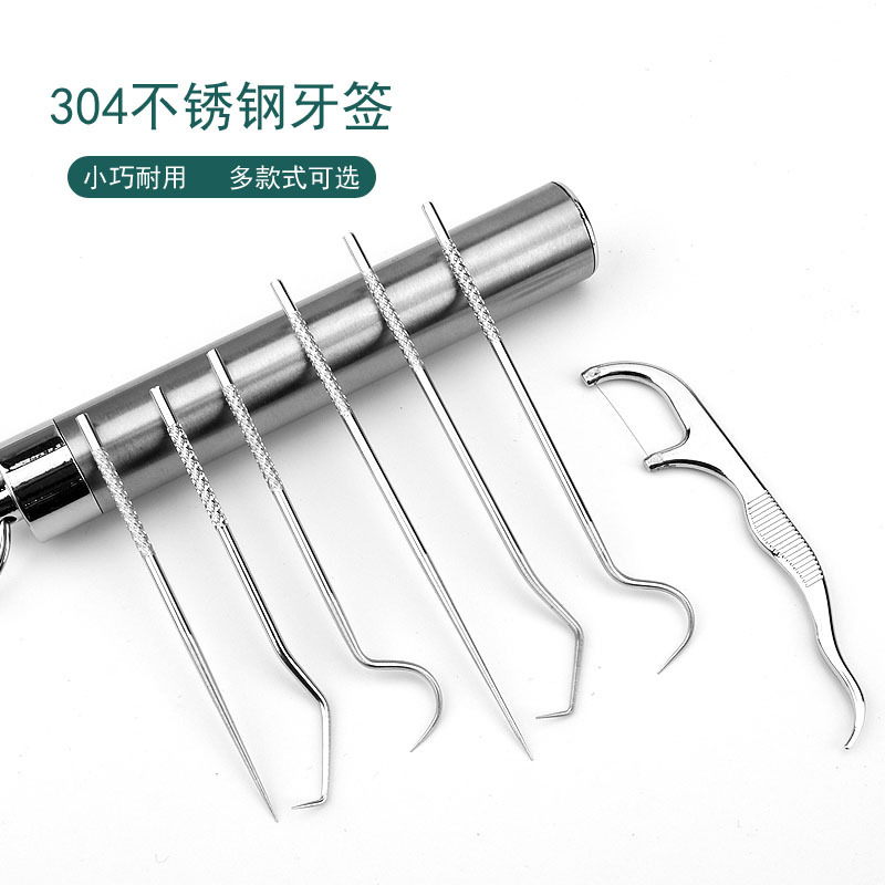 メーカーの現物携帯304ステンレスの歯の糸のつまようじの7つの筒は携帯して鍵のセットをかけることができます。