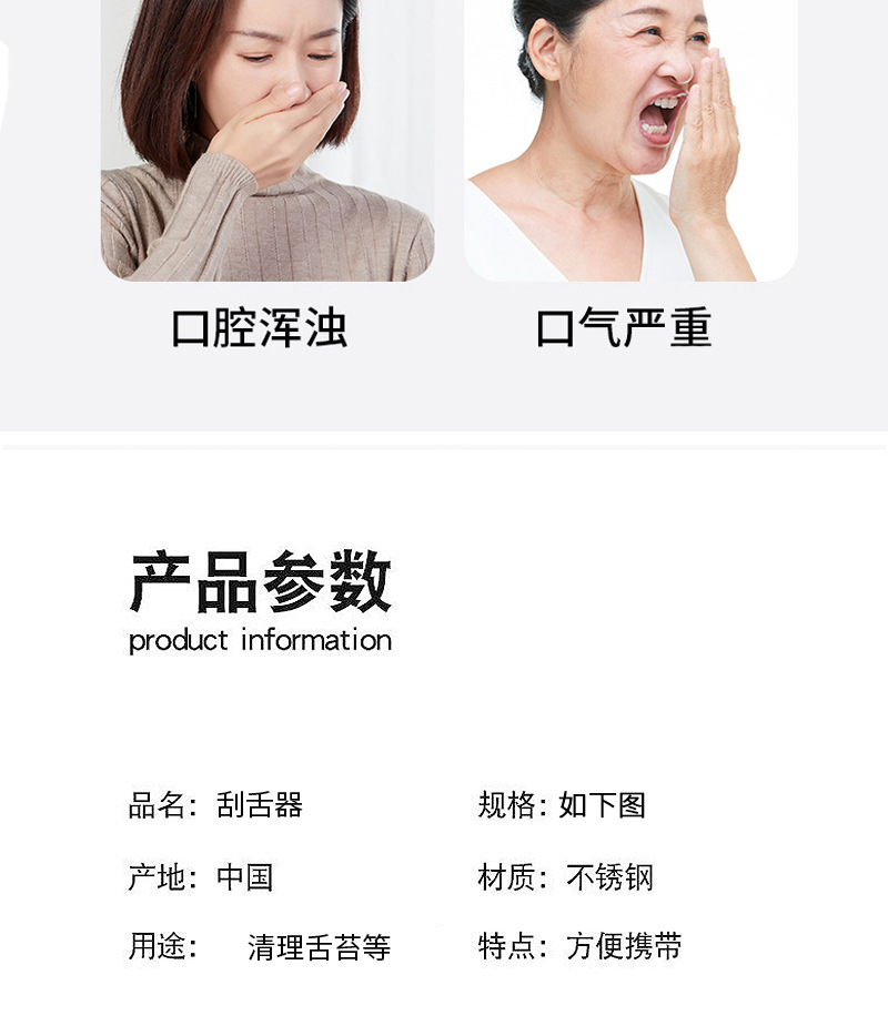 不锈钢舌苔刮舌清洁器 家用商用U形刮舌刷口臭舌头口腔清洁工具