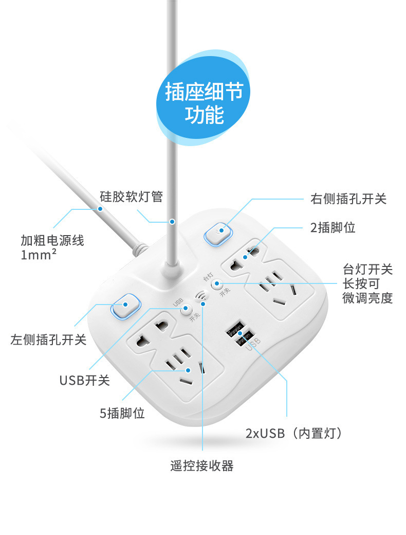 コンセント電気スタンド一体式スマート家庭用寝室スマートインサート夜灯付き多機能コンセントUSB配線板