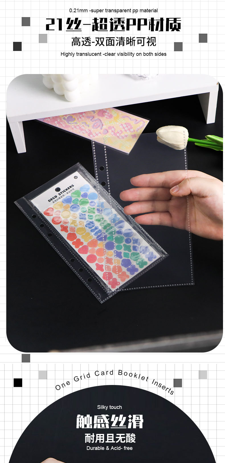 A6ルーズリーフ収納カード袋手帳シール素材ブック収納帳替え芯6穴内ページ手帳パーツ